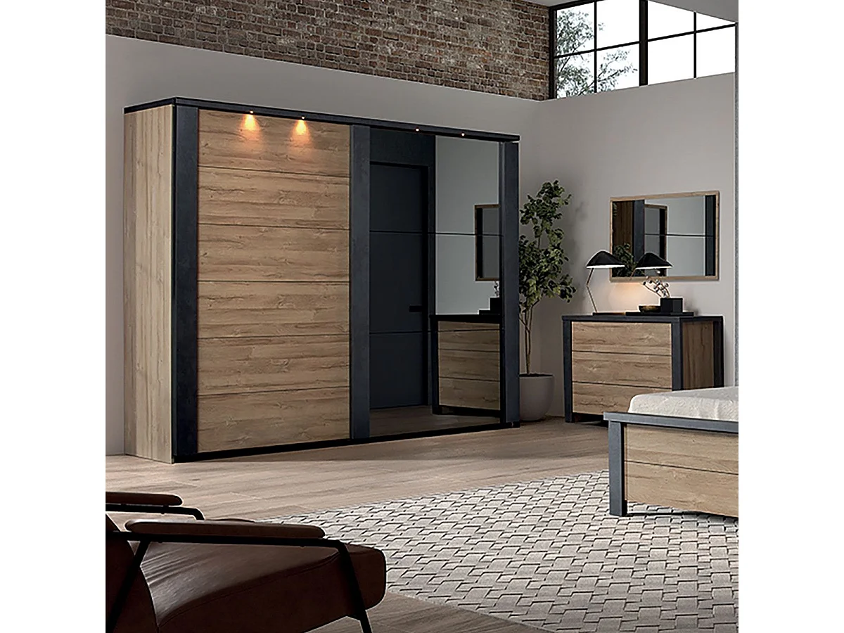 SIWA - Armoire 2 Portes Coulissantes 217cm avec Leds