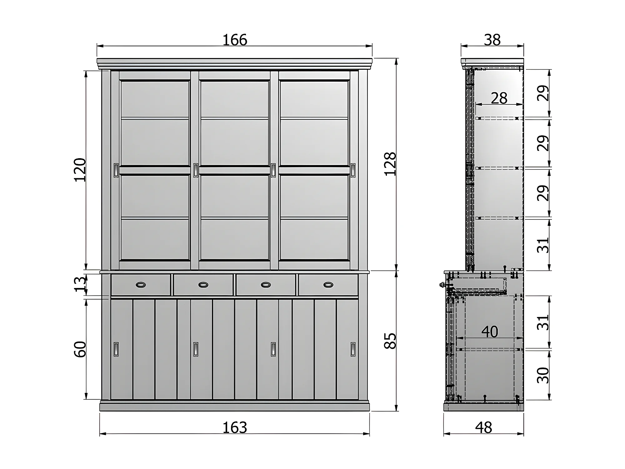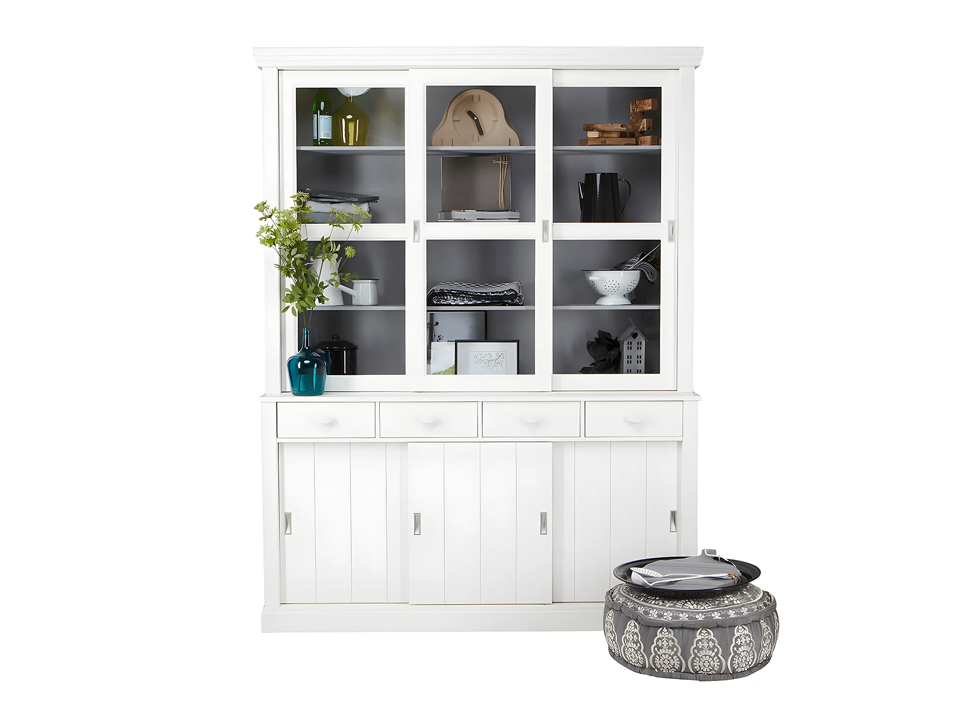 Sjaak - Vaisselier en pin 6 portes 4 tiroirs - Blanc
