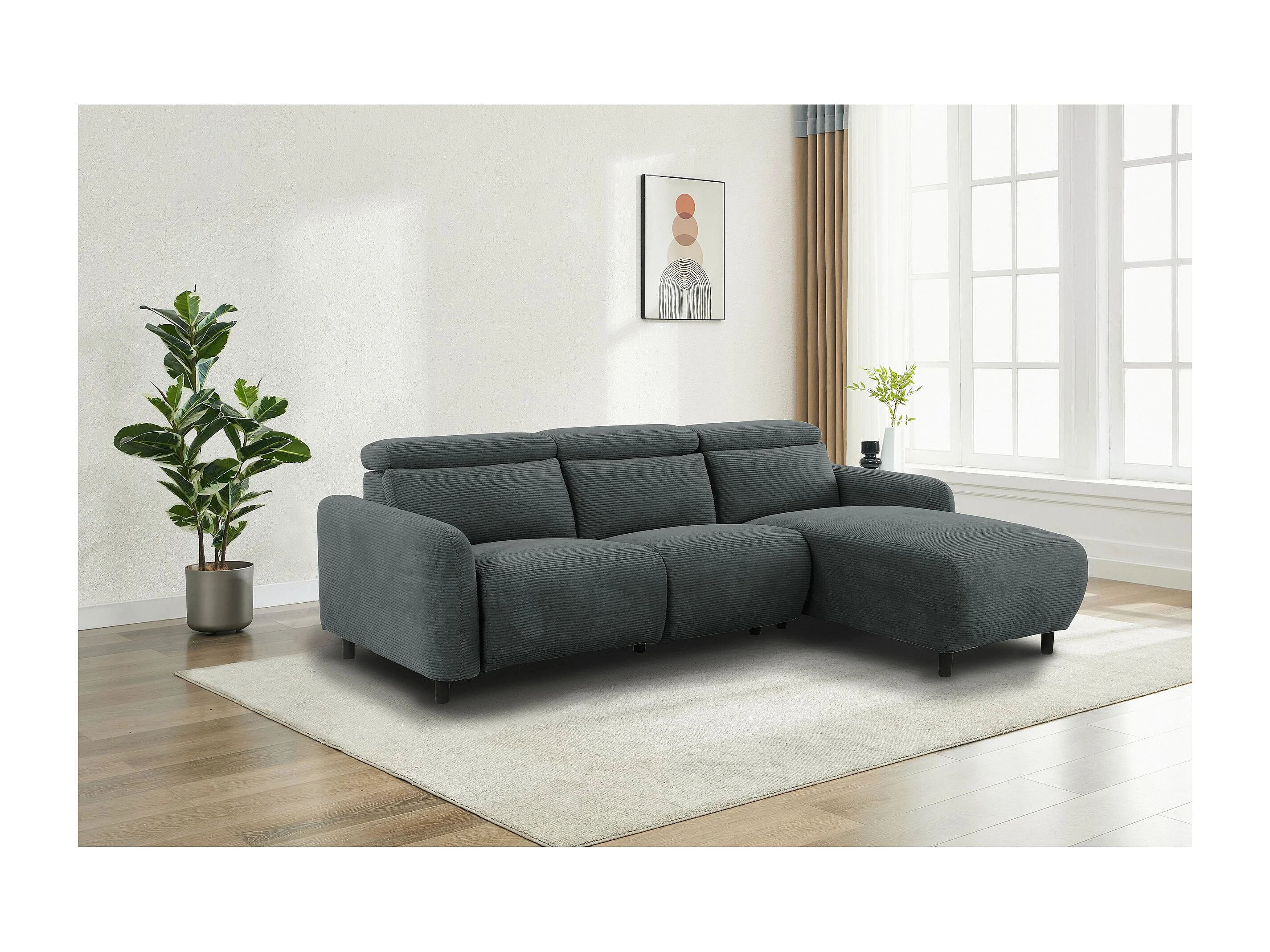 Skaane | Sofa 3 seater with chaise right & electric function in corduroy anthracite