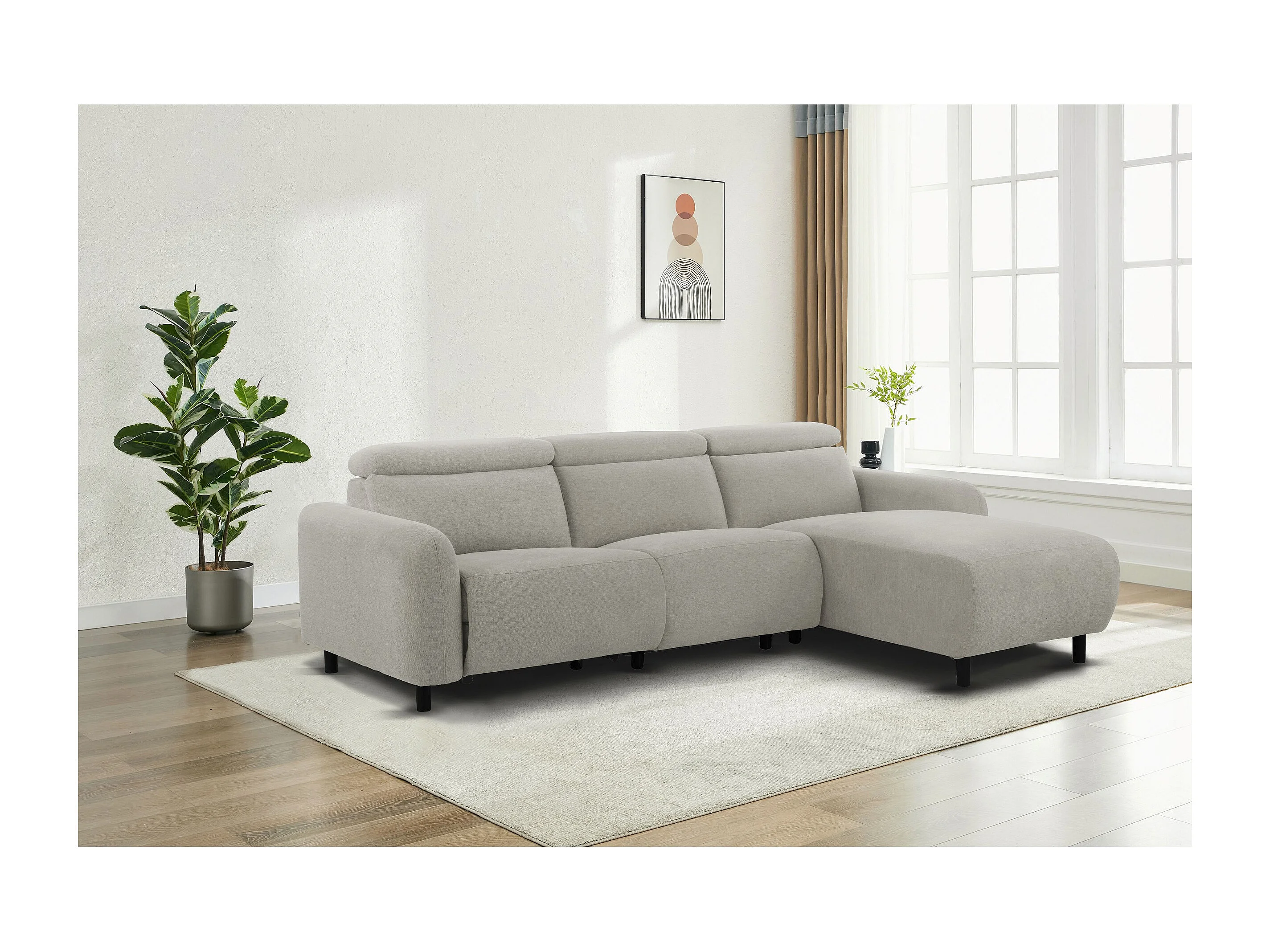 Skaane | Sofa 3 seater with chaise right & electric function in fabric lightgrey