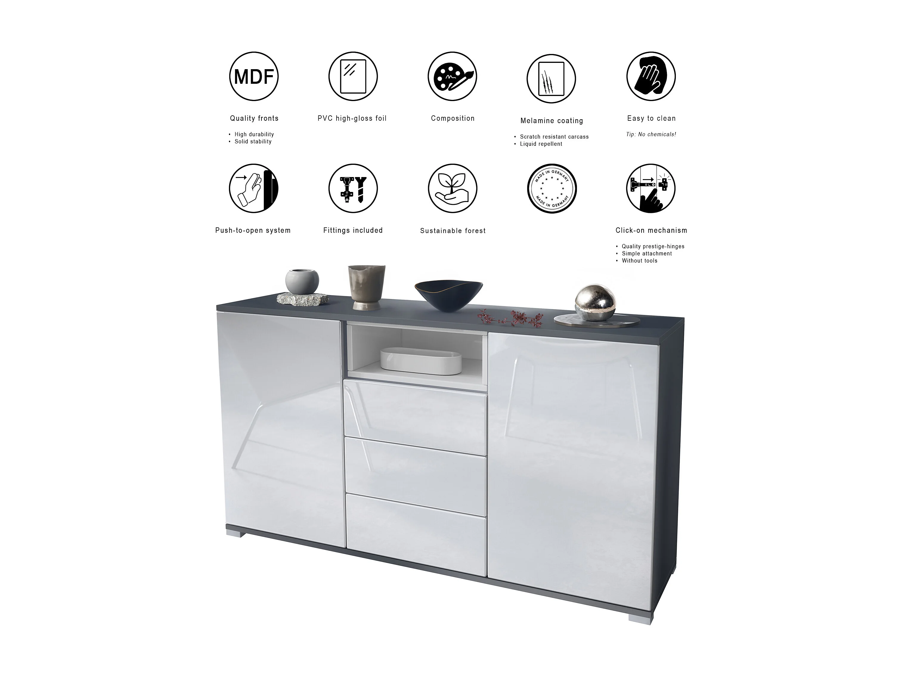 Skadu V2 Buffet, Commode avec 2 portes, 3 tiroirs et 1 compartiment ouvert, anthracite mat/gris haute brillance (138,5 x 75,5 x 35 cm)