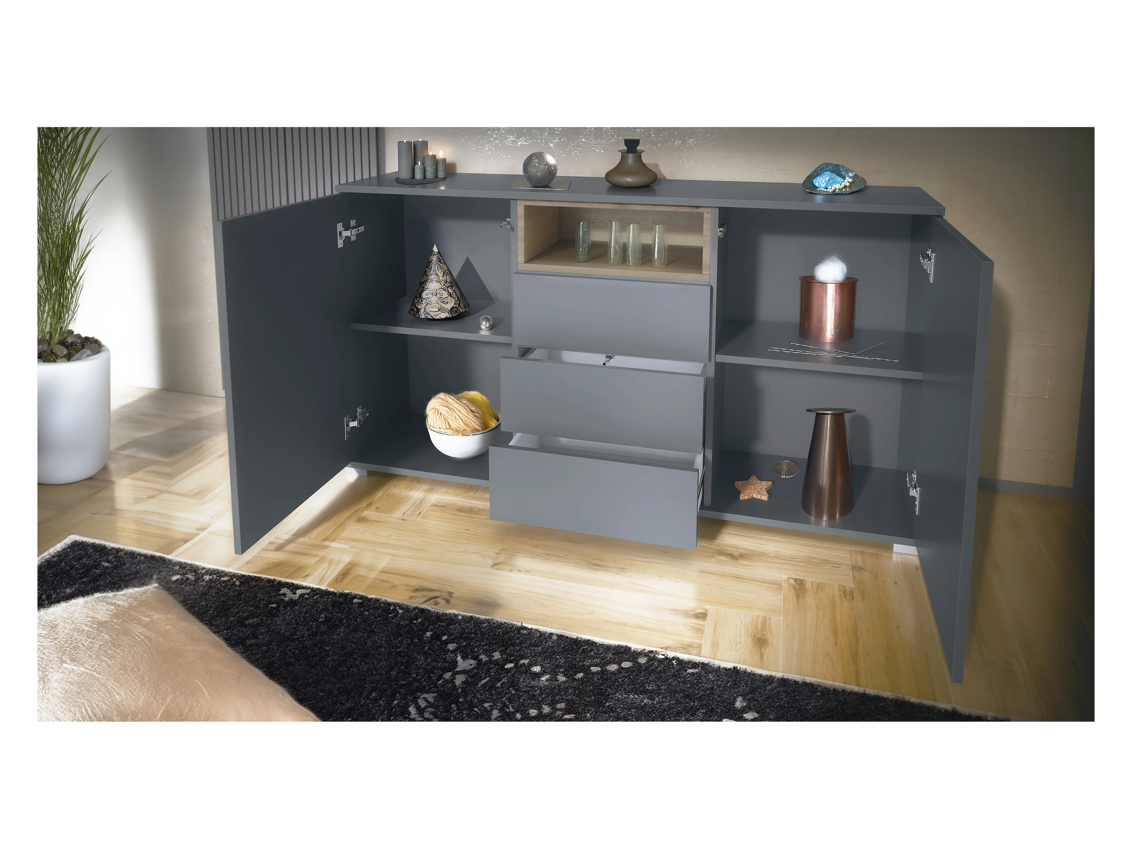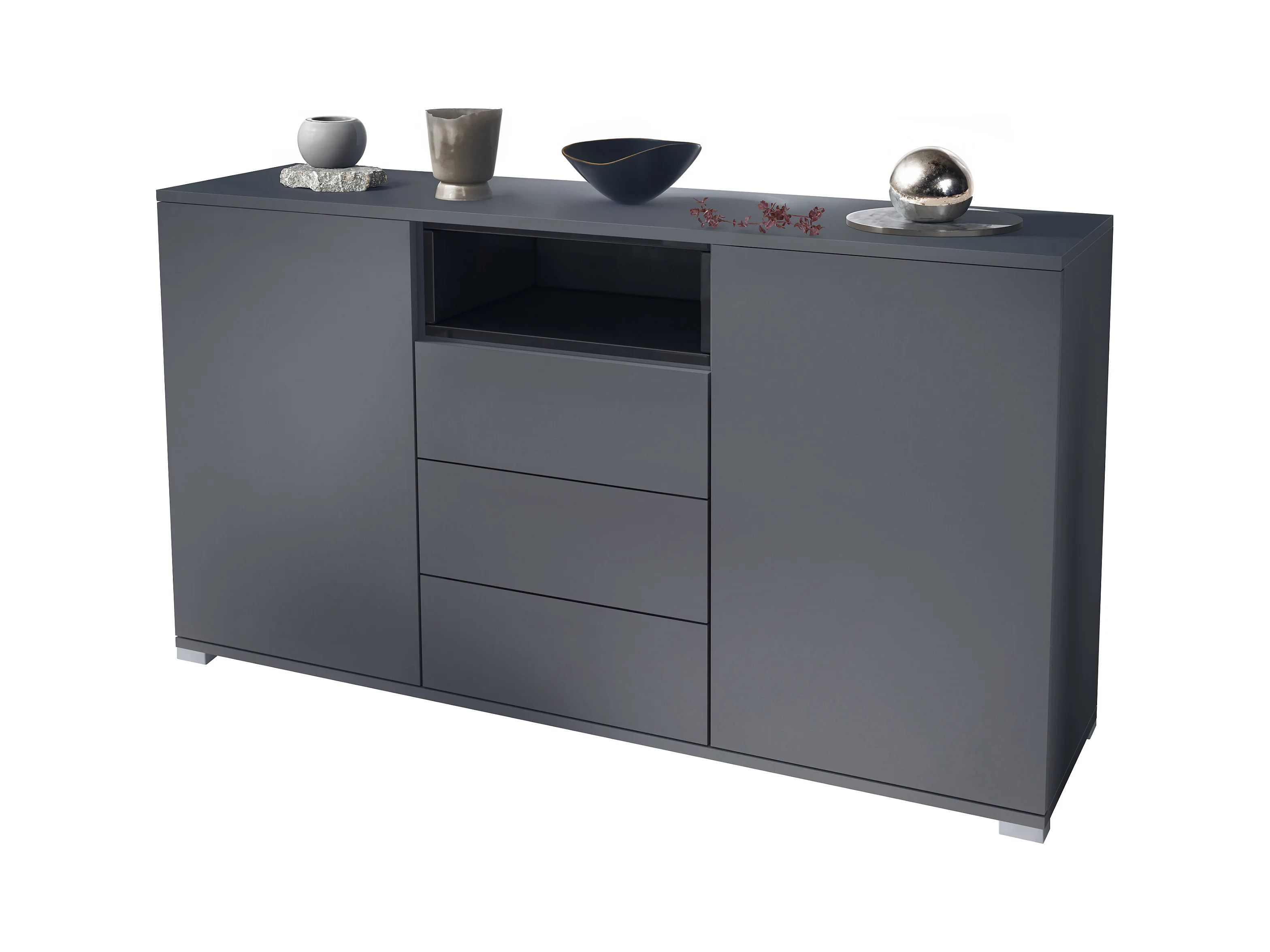 Skadu V2 Buffet, Commode avec 2 portes, 3 tiroirs et 1 compartiment ouvert, anthracite mat/noir haute brillance (138,5 x 75,5 x 35 cm)