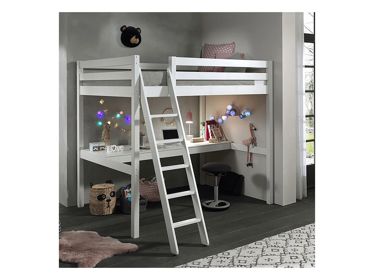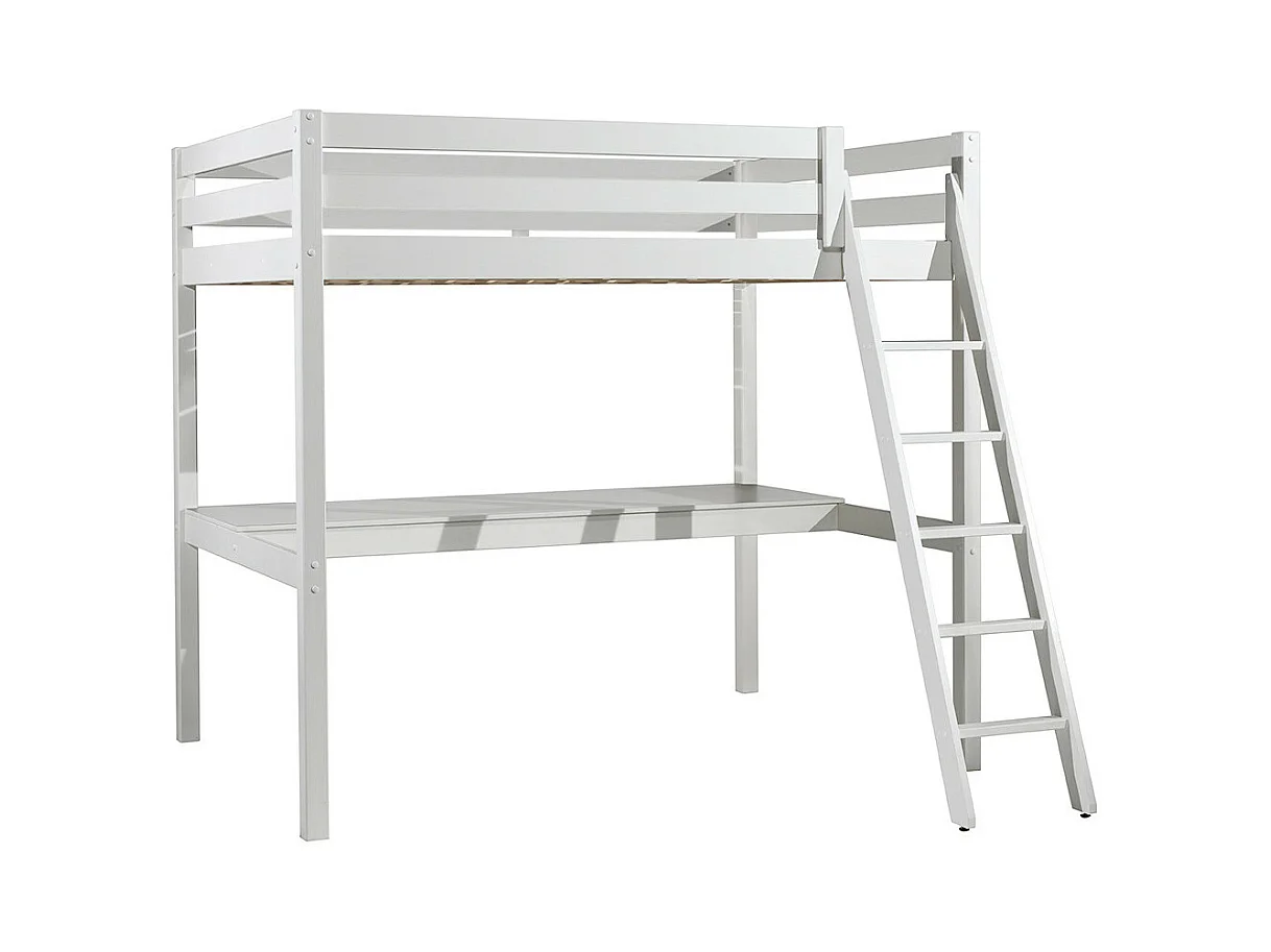 SLEEPY - Lit Mezzanine Blanc 140x200cm avec Bureau 205 cm