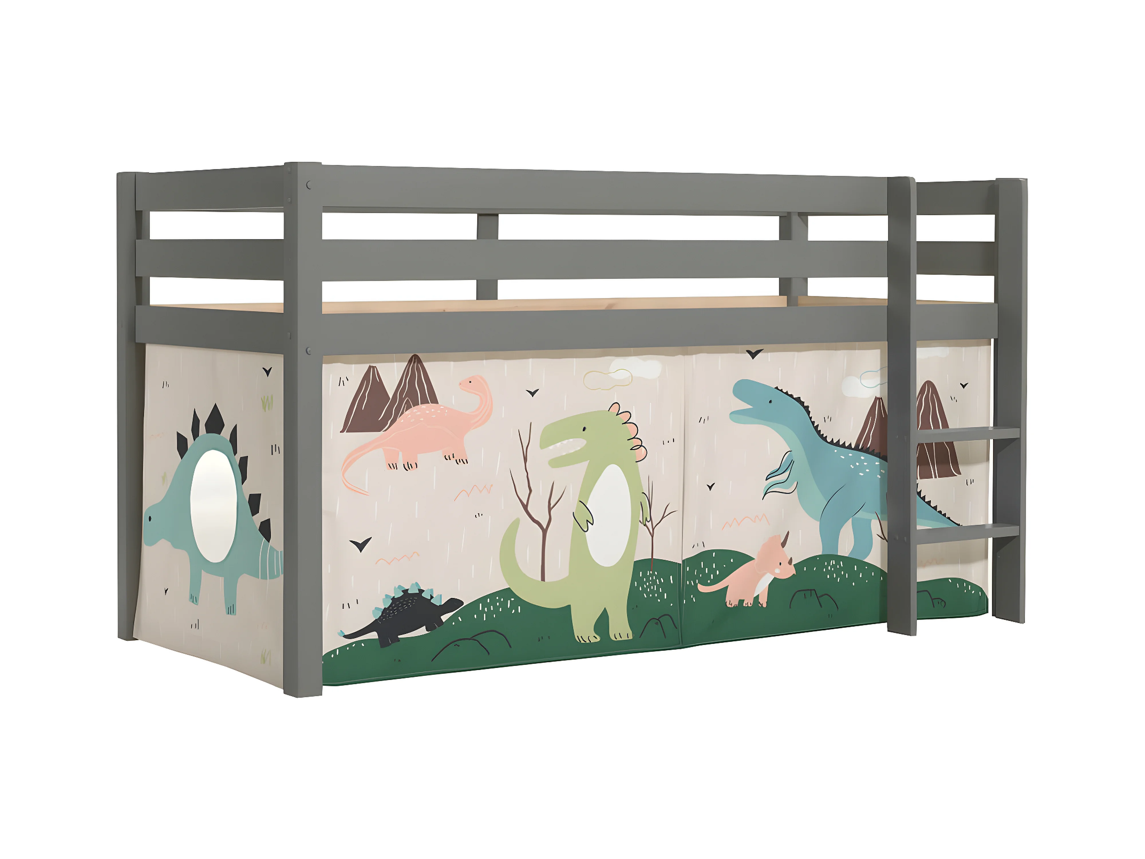 SLEEPY - Lit Mi-Haut en Pin Laqué Gris 90x200cm Housse Dino