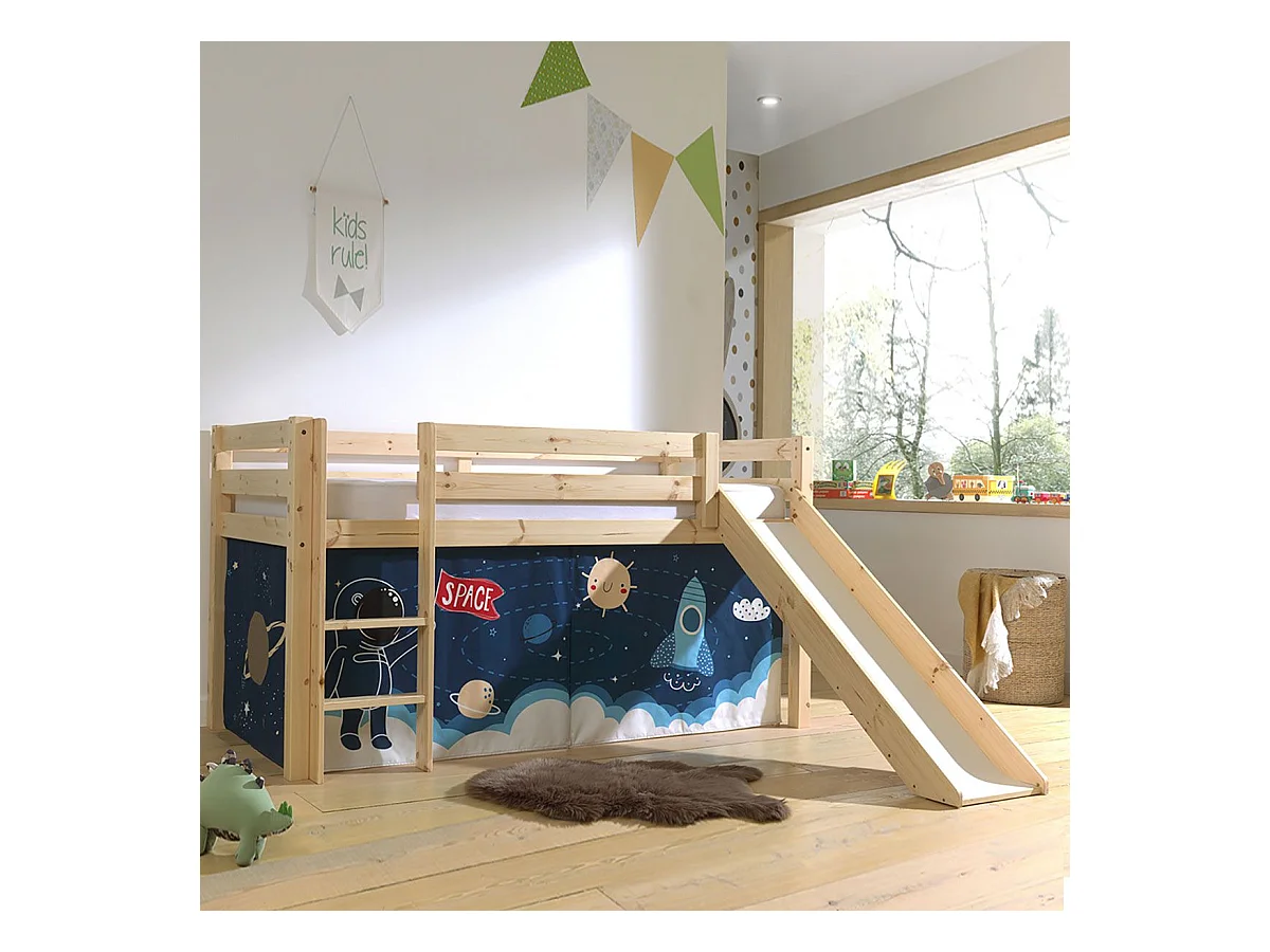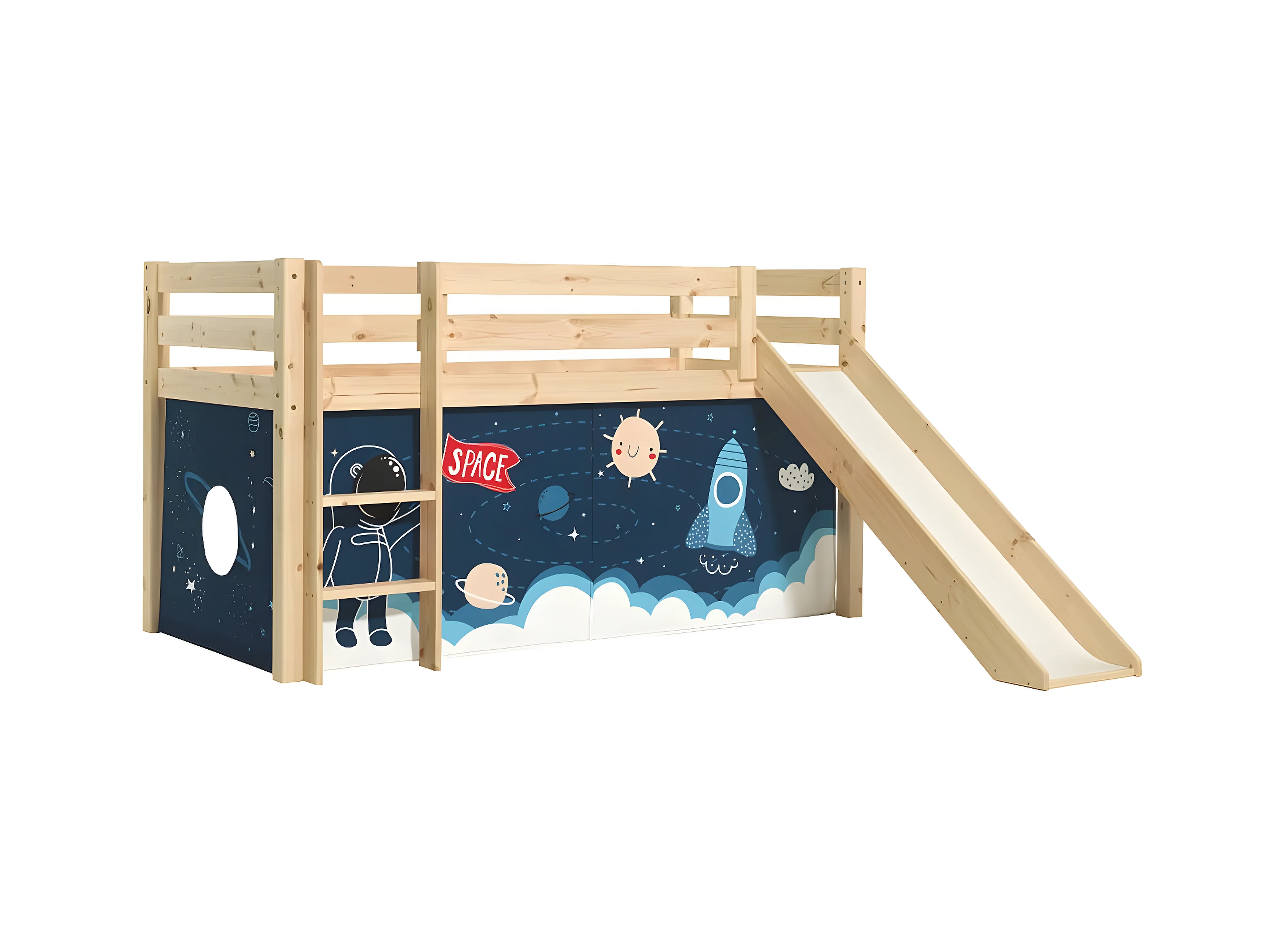 SLEEPY - Lit Mi-Haut Tobogan en Pin Naturel 90x200cm Housse Espace
