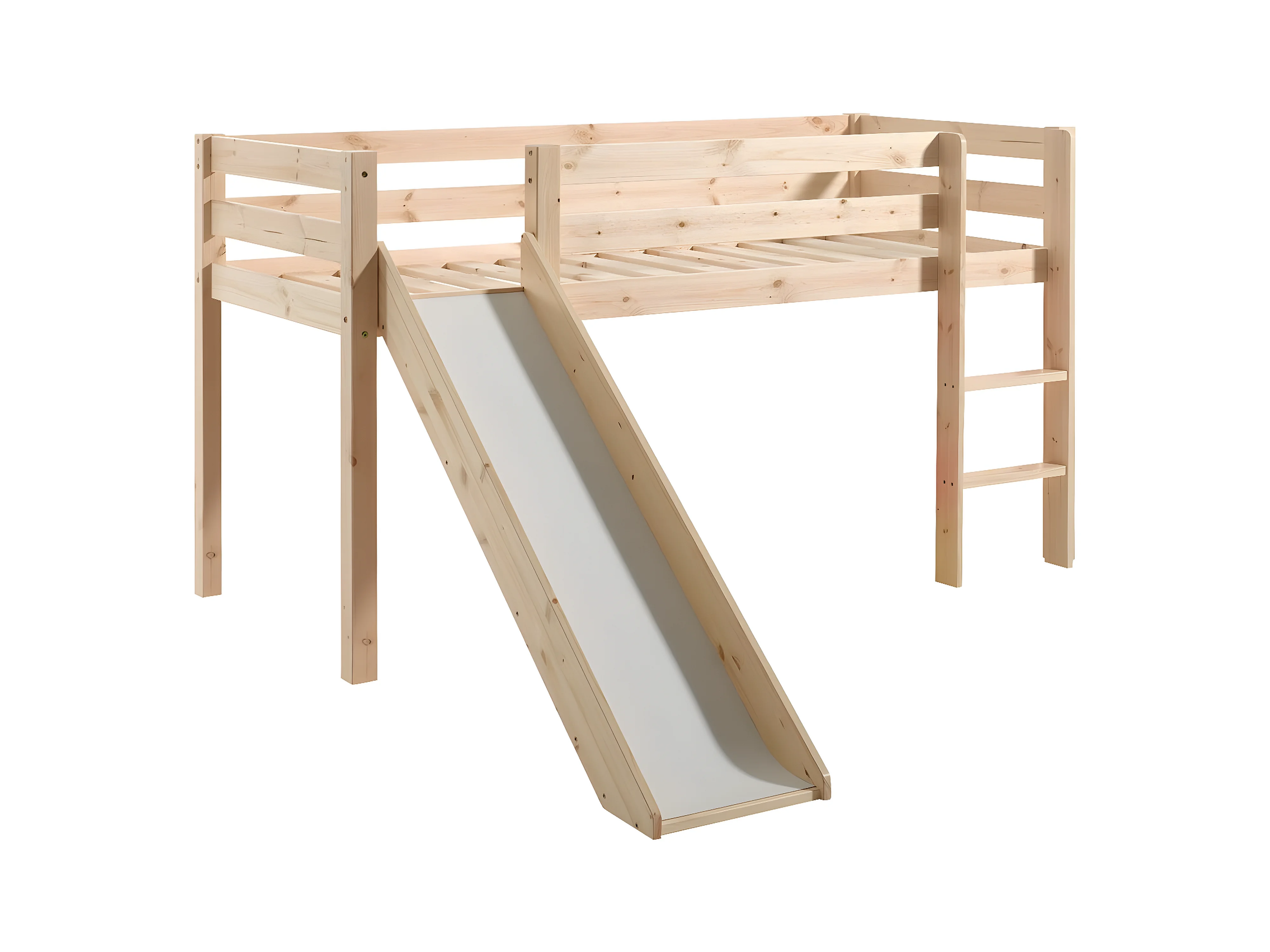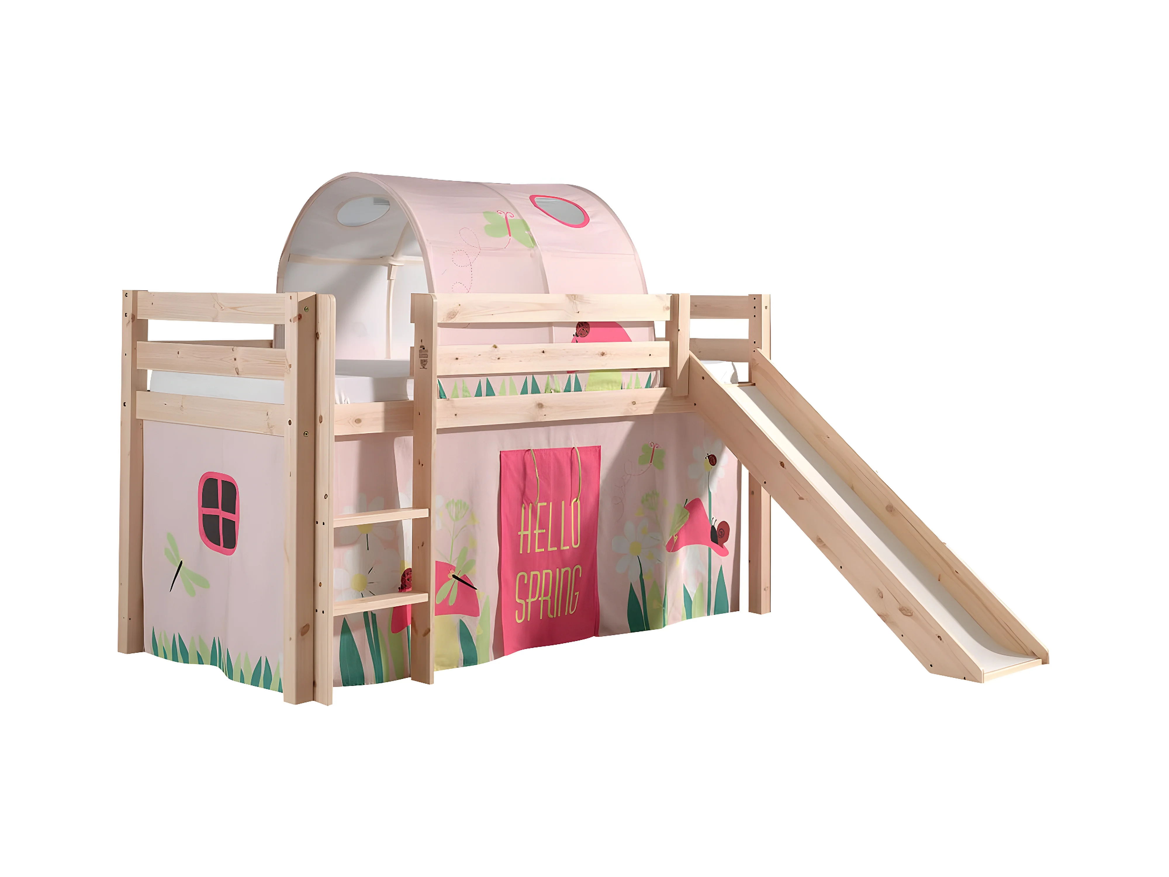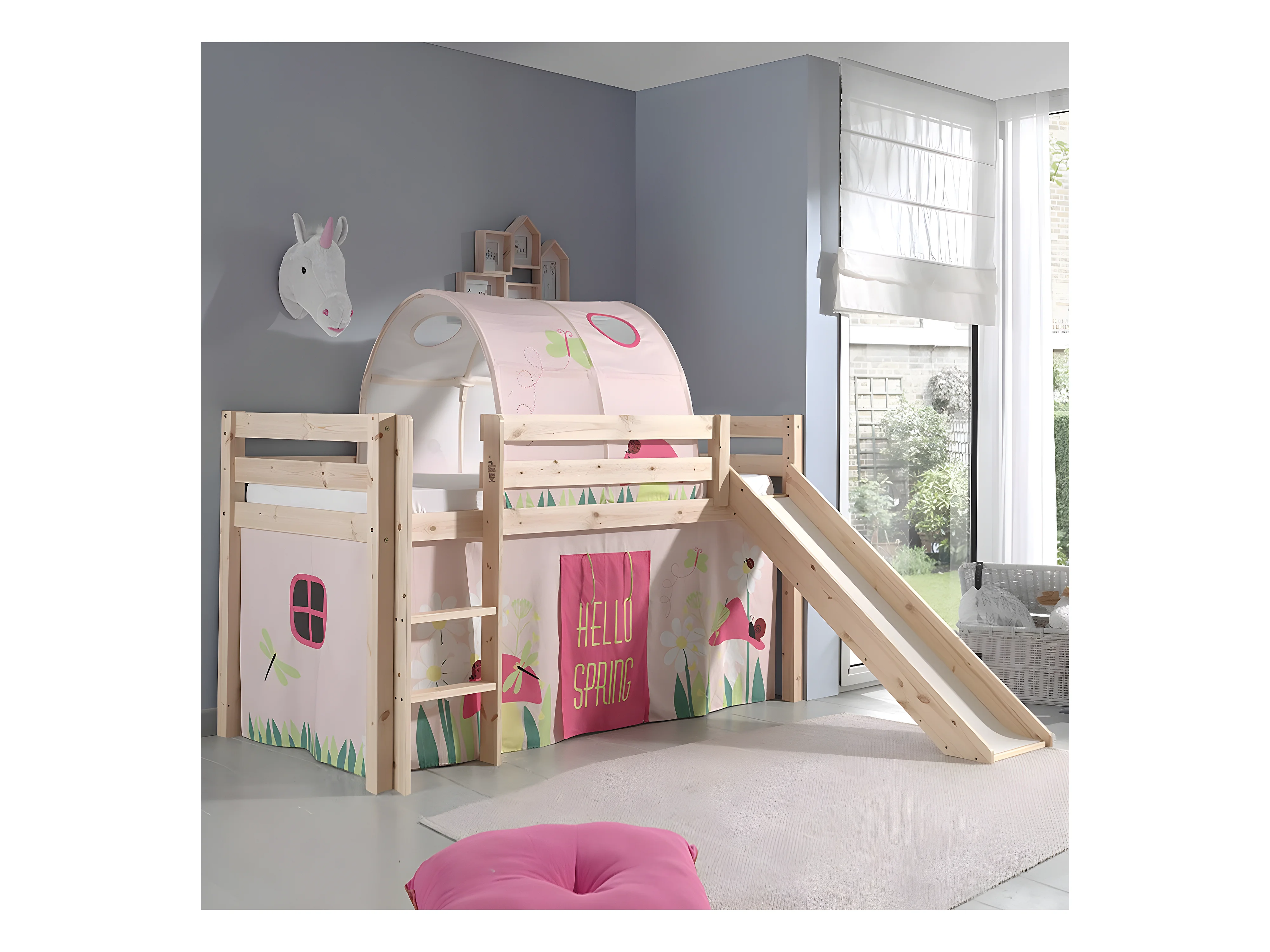SLEEPY - Lit Mi-Haut Tobogan en Pin Naturel 90x200cm Housse et Tunnel Garden