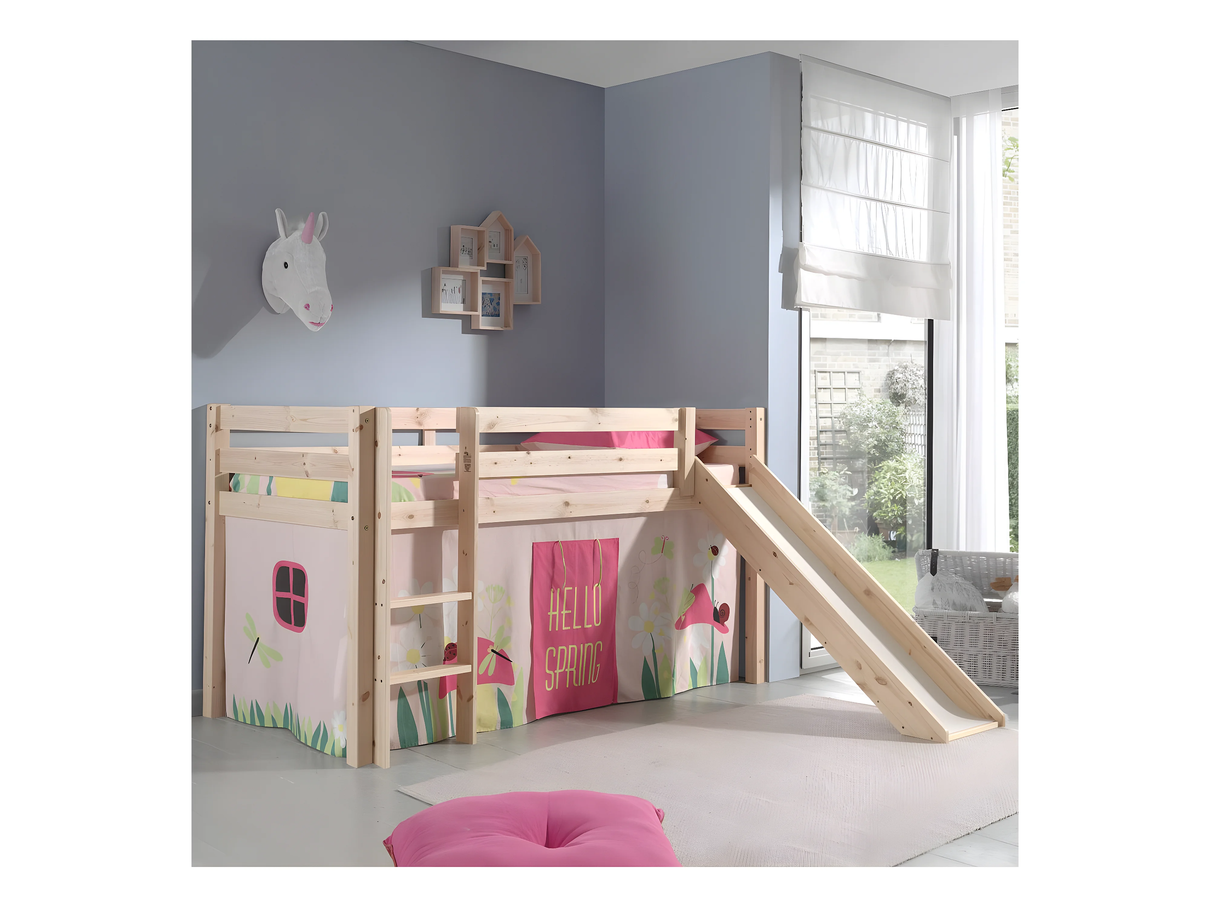 SLEEPY - Lit Mi-Haut Tobogan en Pin Naturel 90x200cm Housse Garden