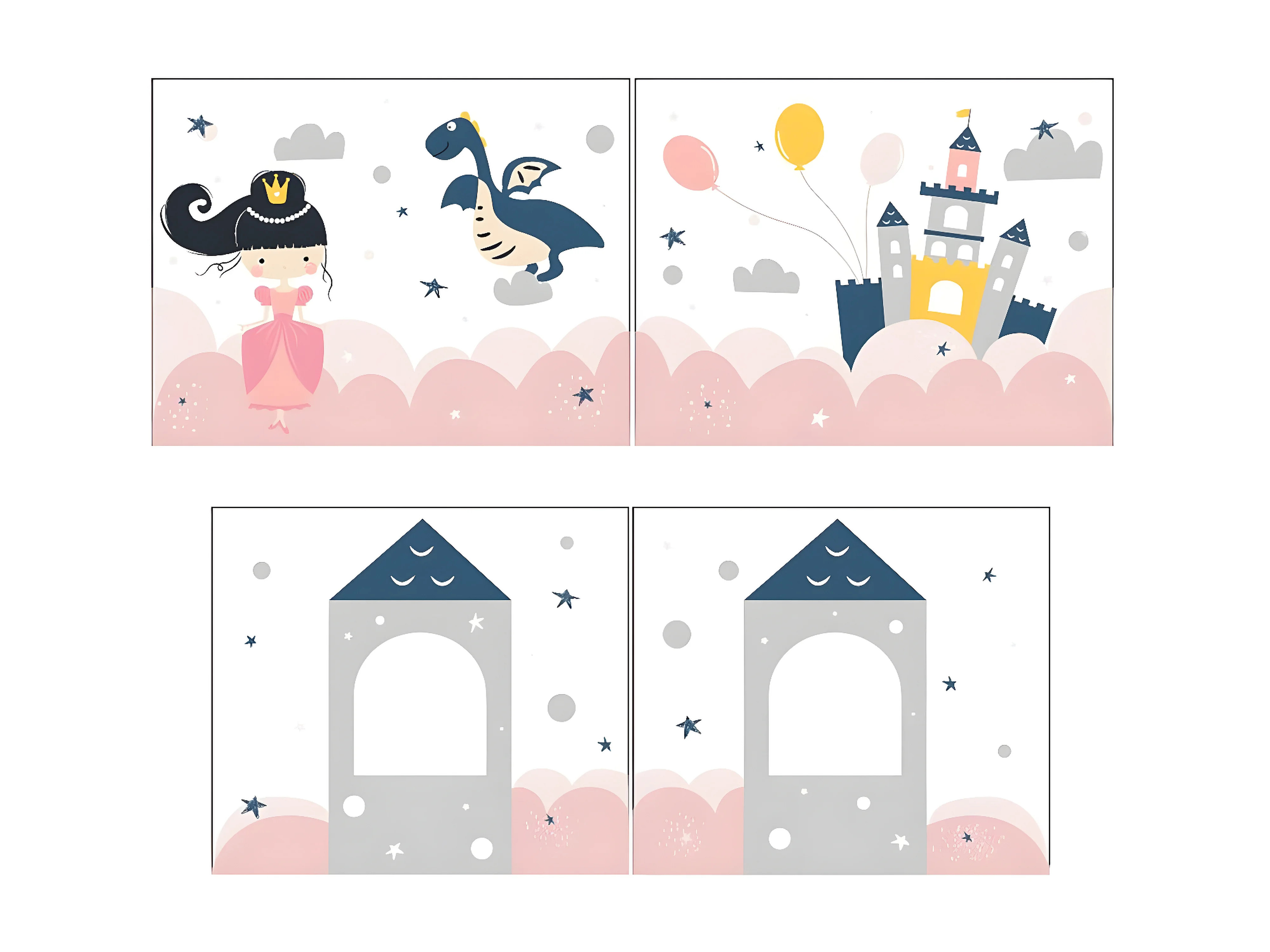 SLEEPY - Lit Mi-Haut Tobogan en Pin Naturel 90x200cm Housse Princesse