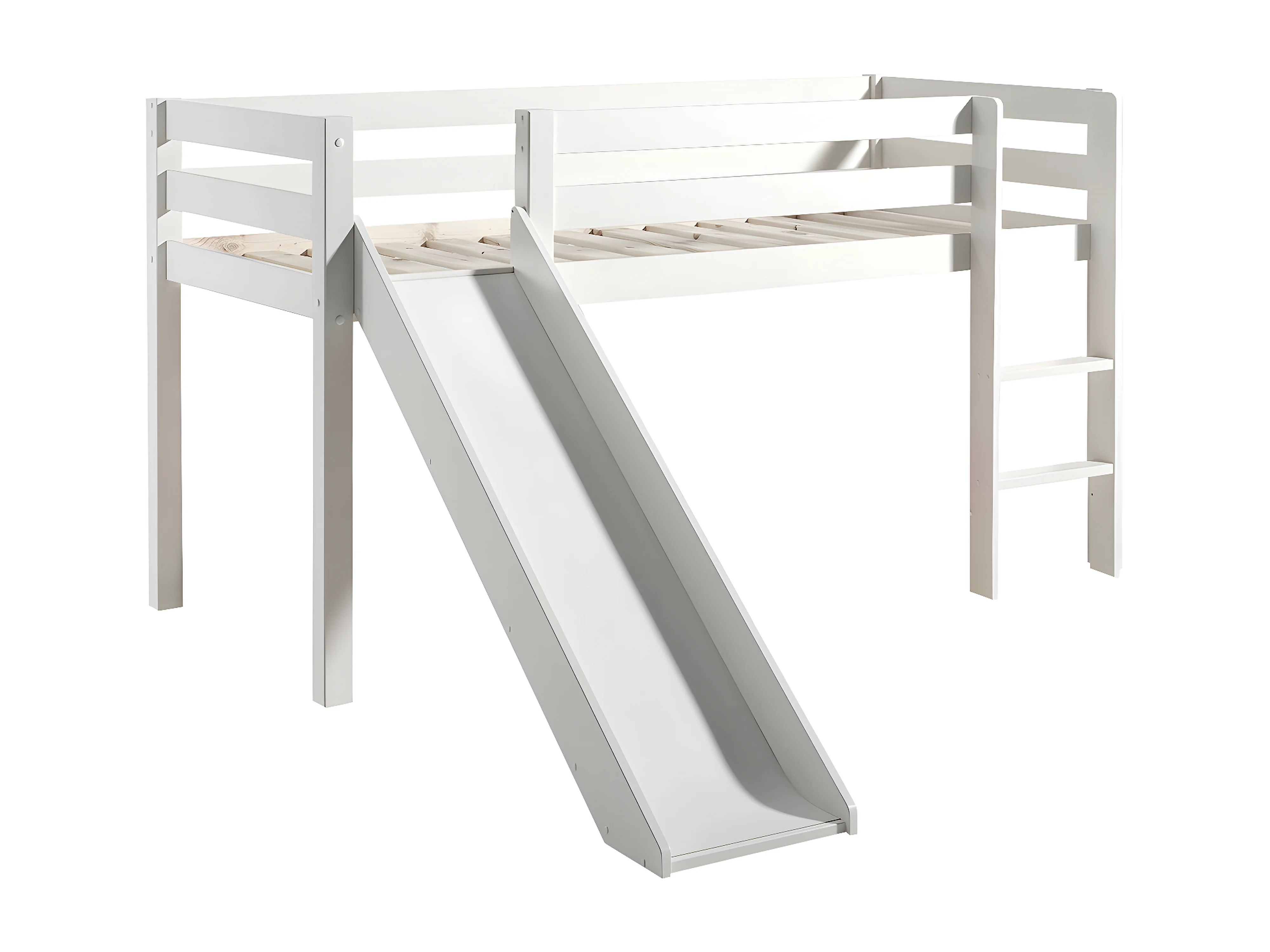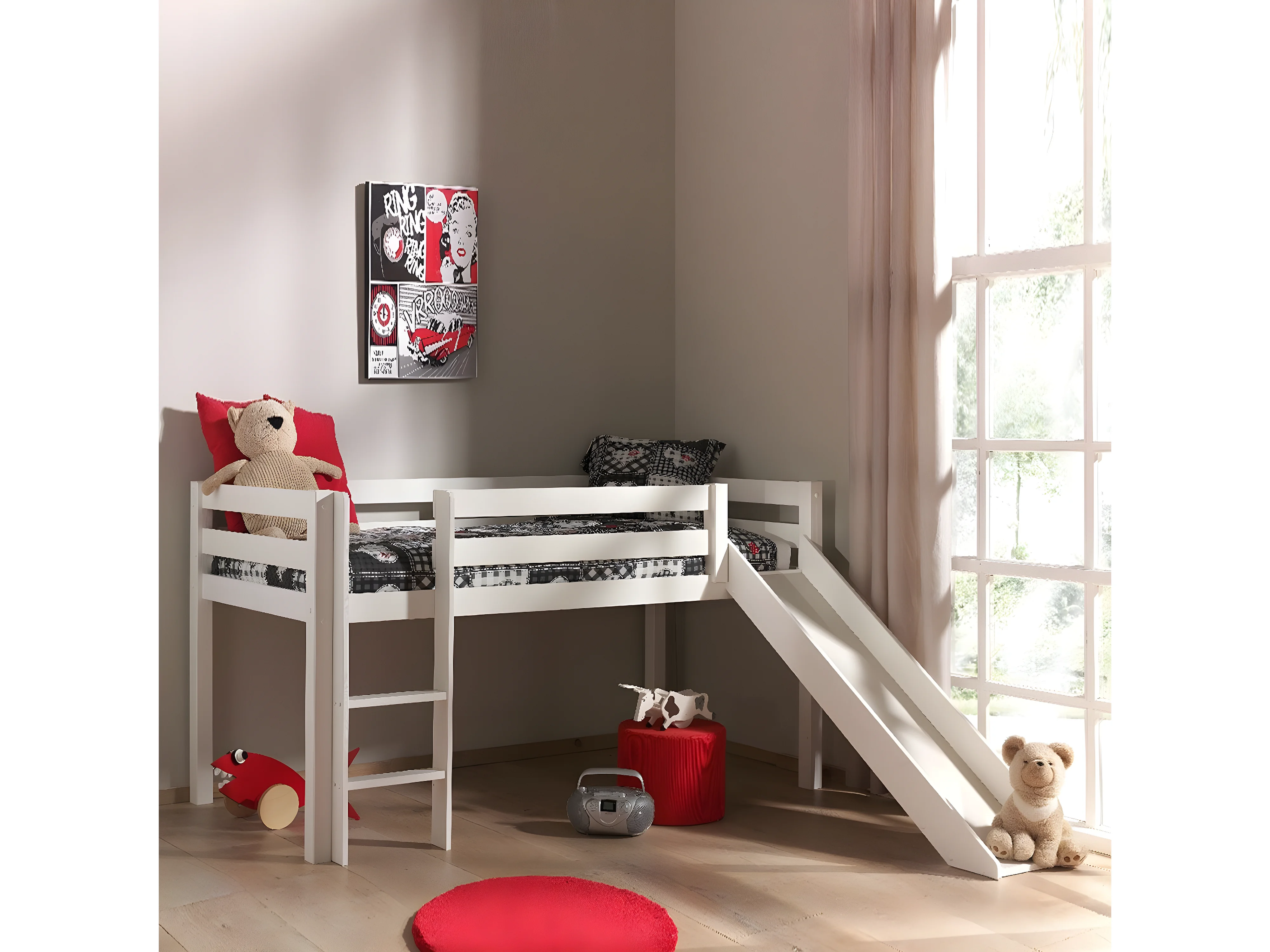 SLEEPY - Lit Mi-Hauteur Tobogan en Pin Laqué Blanc 90x200cm