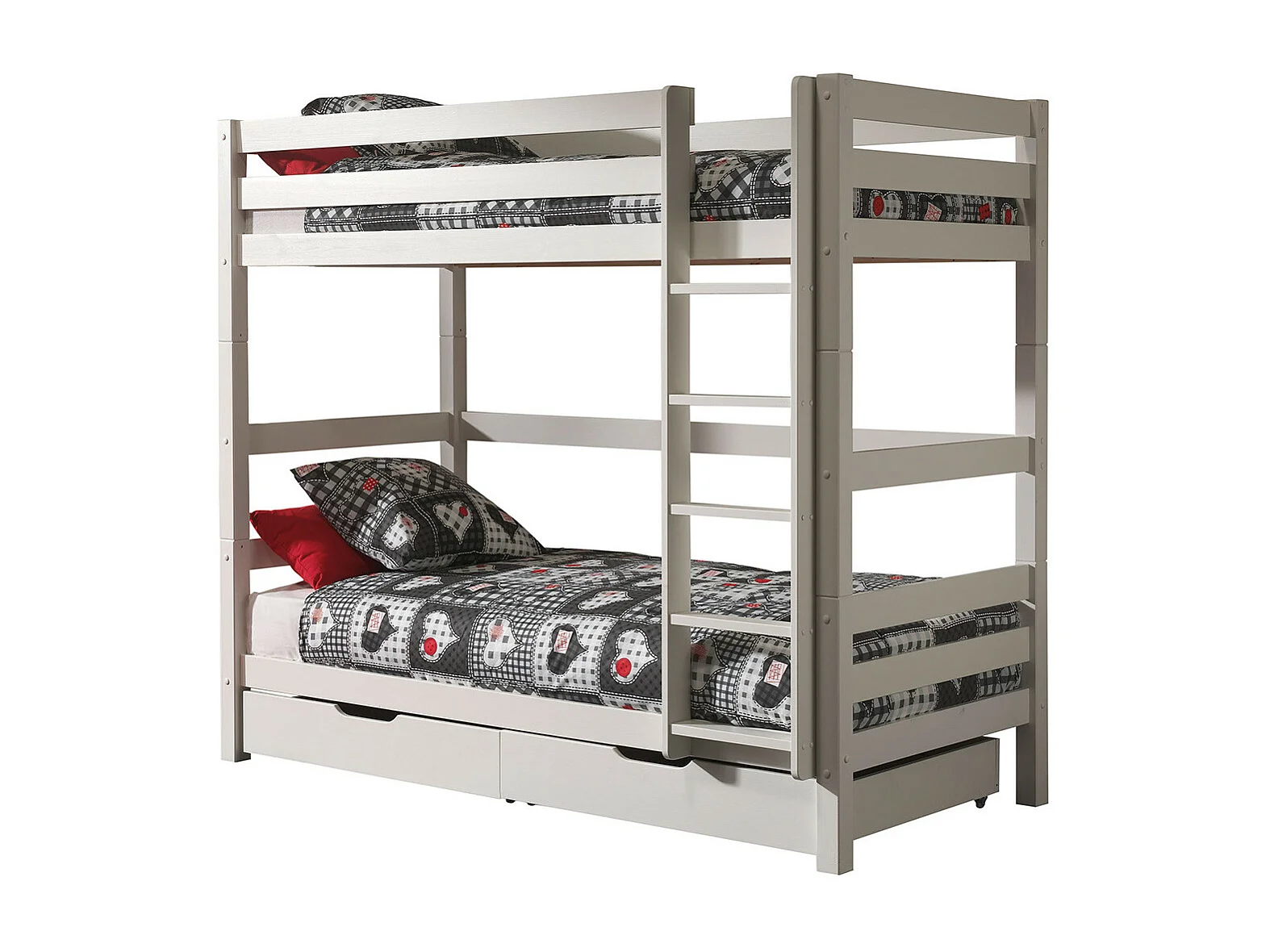 SLEEPY - Lit Superposé H180 Laqué Blanc 90x200cm avec 2 Tiroirs