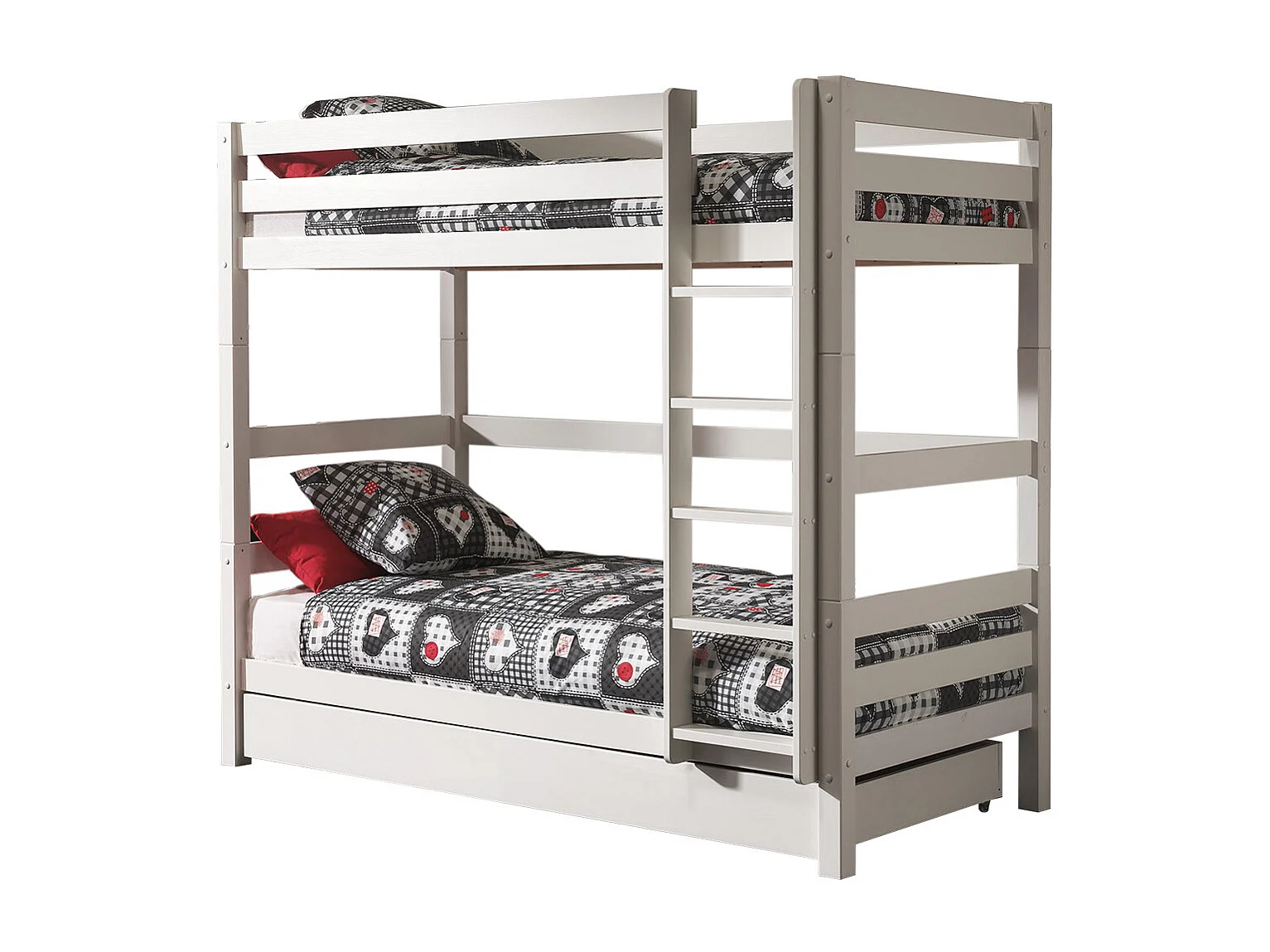 SLEEPY - Lit Superposé H180 Laqué Blanc 90x200cm avec Lit-Tiroir