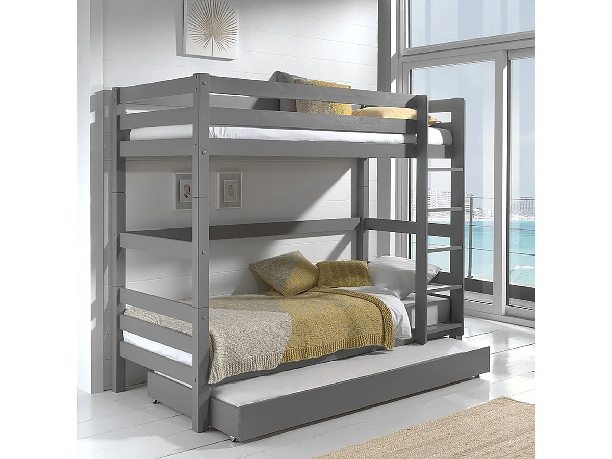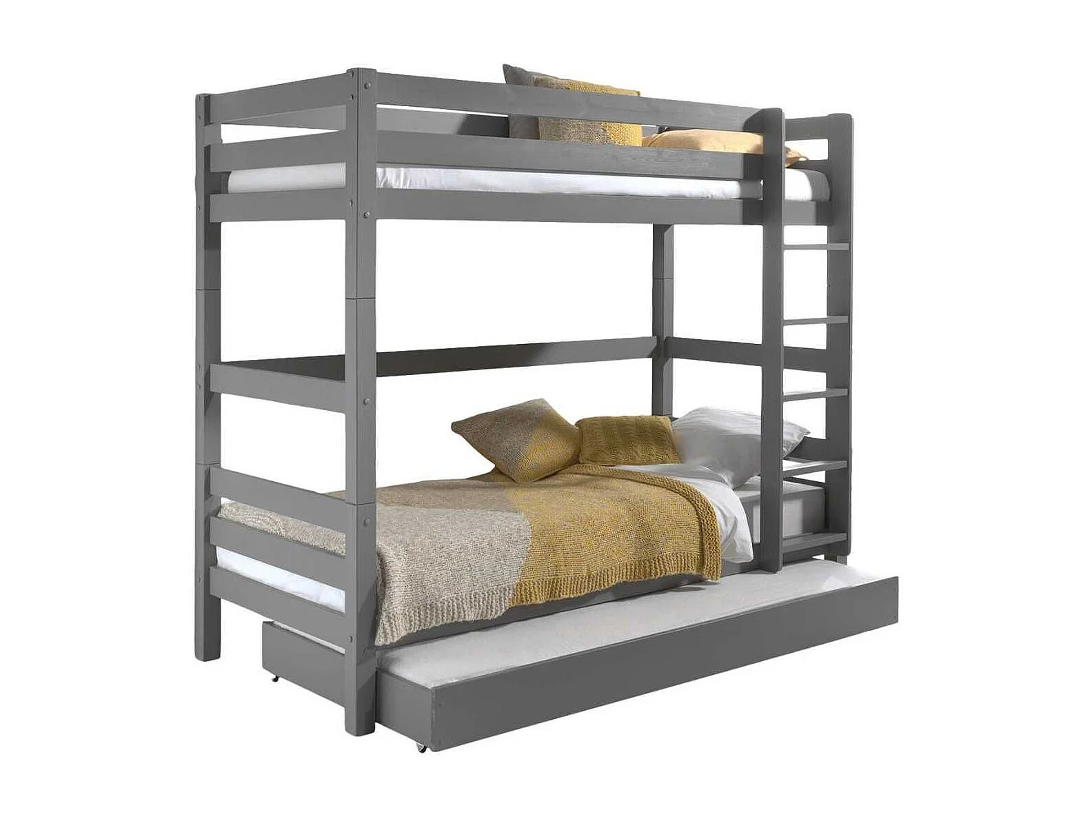 SLEEPY - Lit Superposé H180 Laqué Gris 90x200cm avec Lit-Tiroir