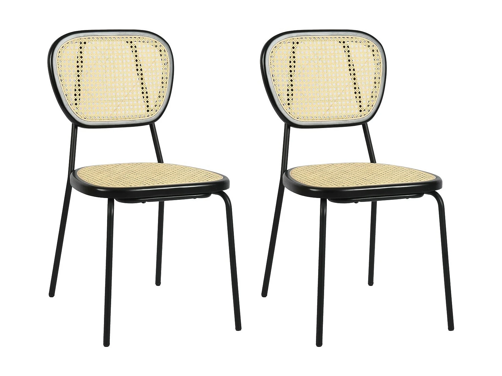 Lot de 2 chaises salle manger en rotin nature et structure métallique noir SMEDLEY