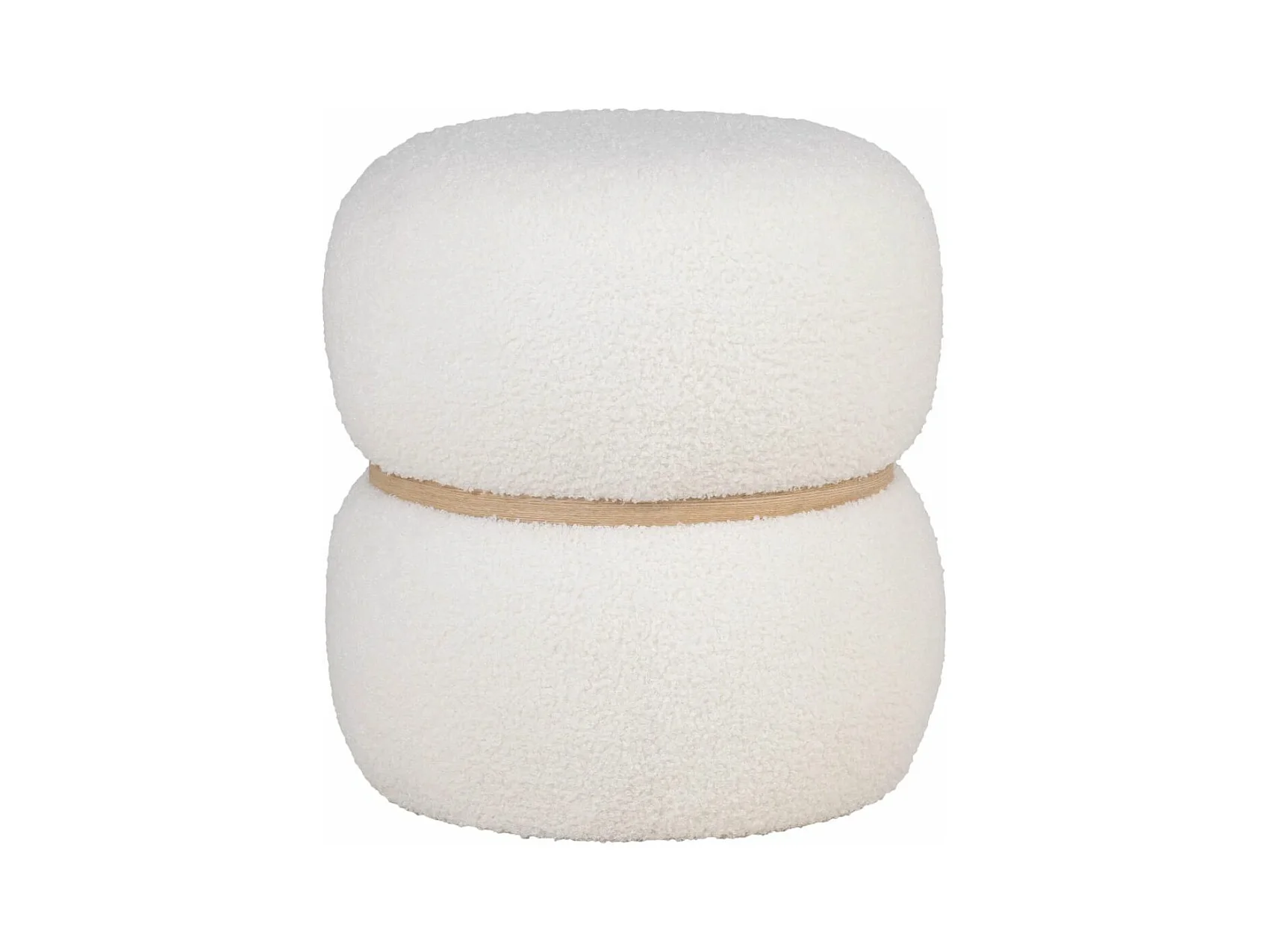 SNOVIK - Pouf Rond en Tissu Bouclé Blanc Ceinturé en MDF