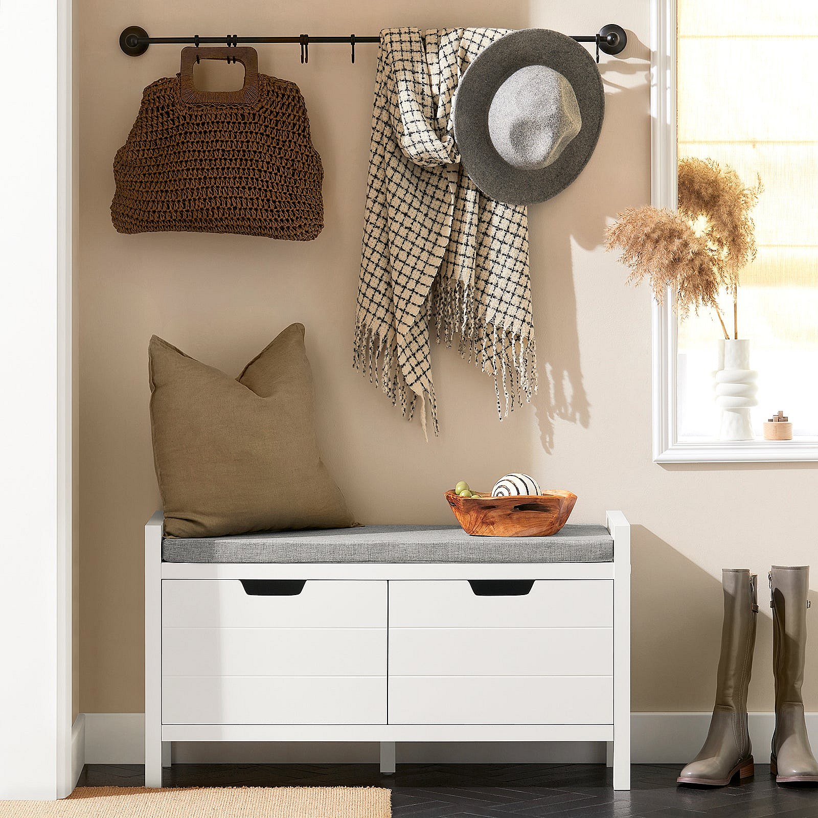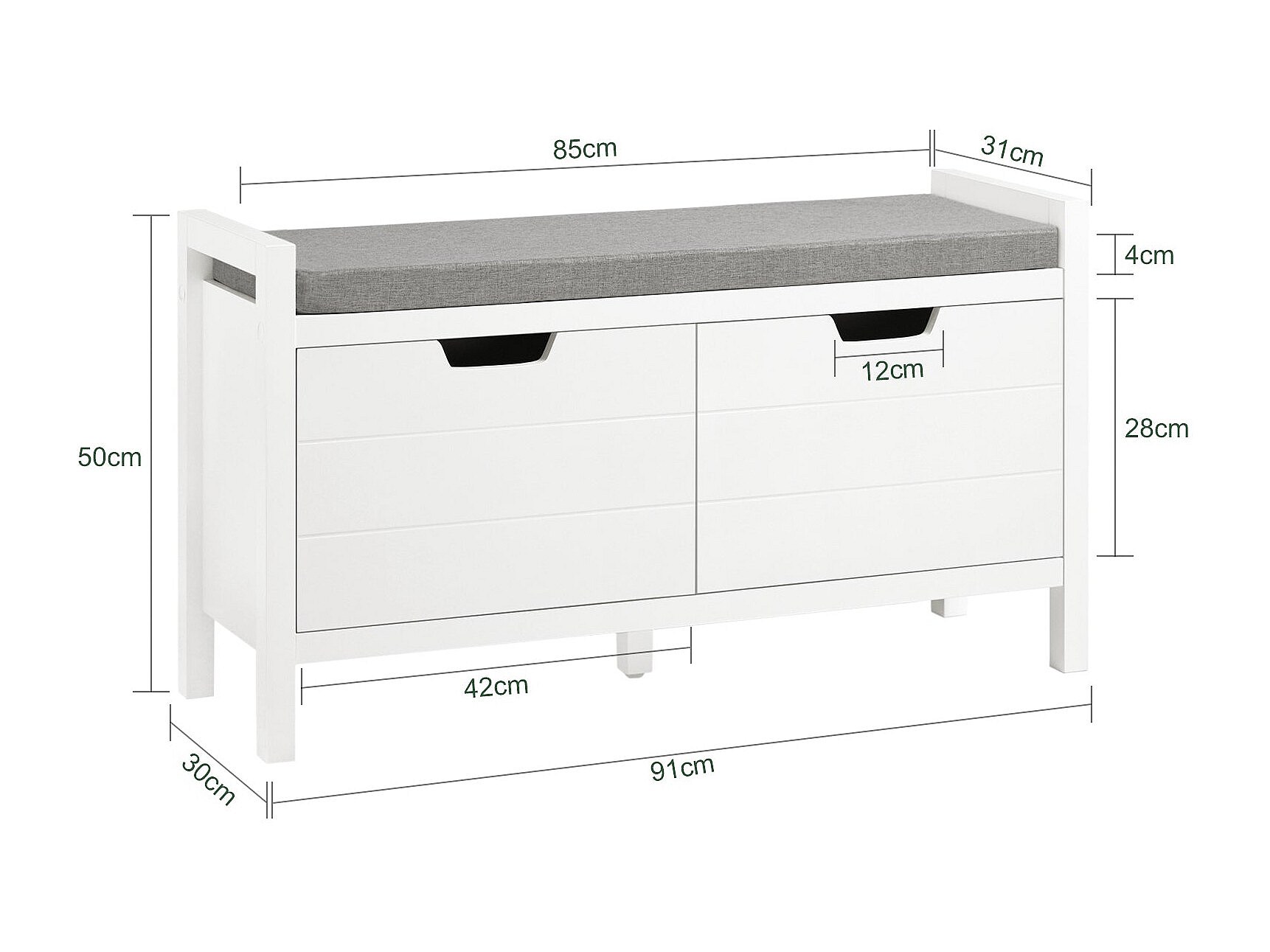 SoBuy Banc à Chaussures avec Rangement Fermé, Coussin Rembourré, 150kg Capacité, Blanc Moderne