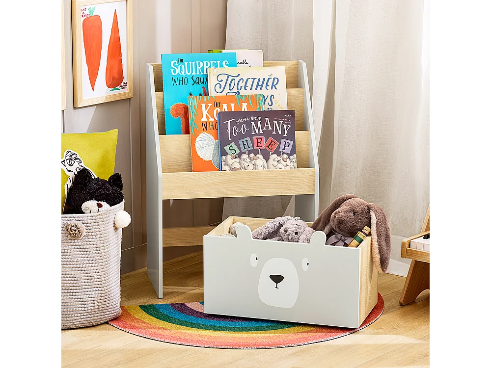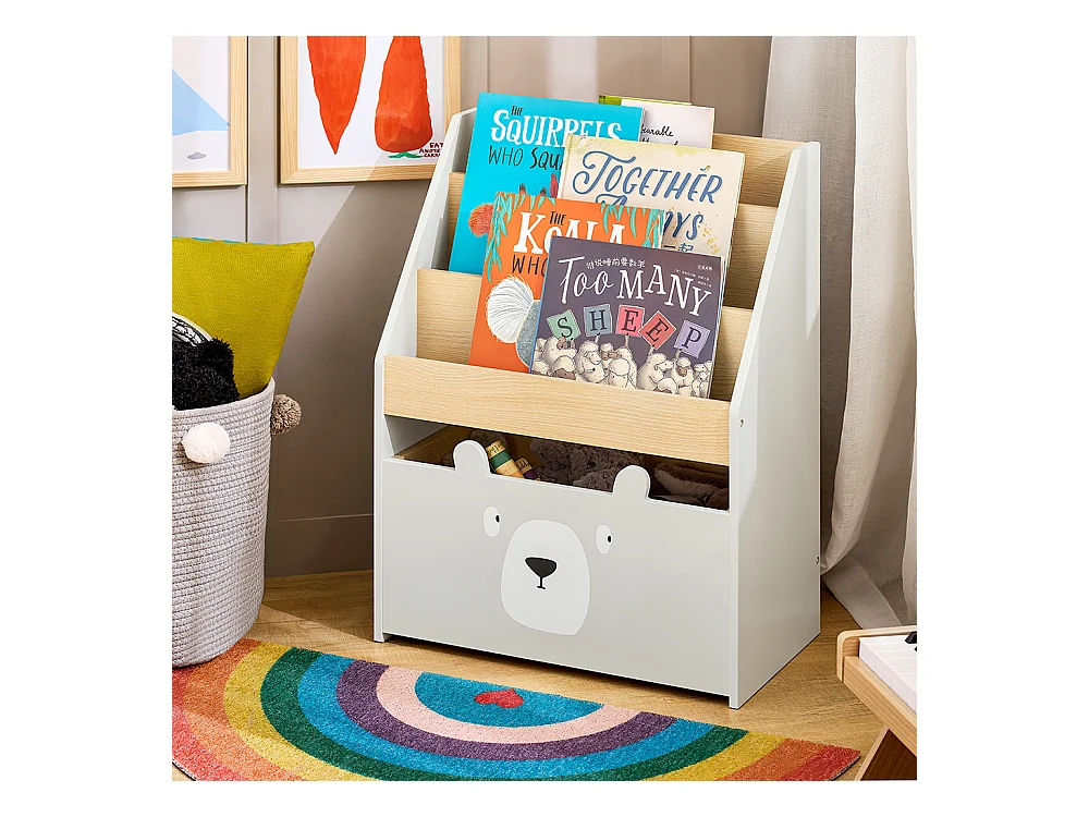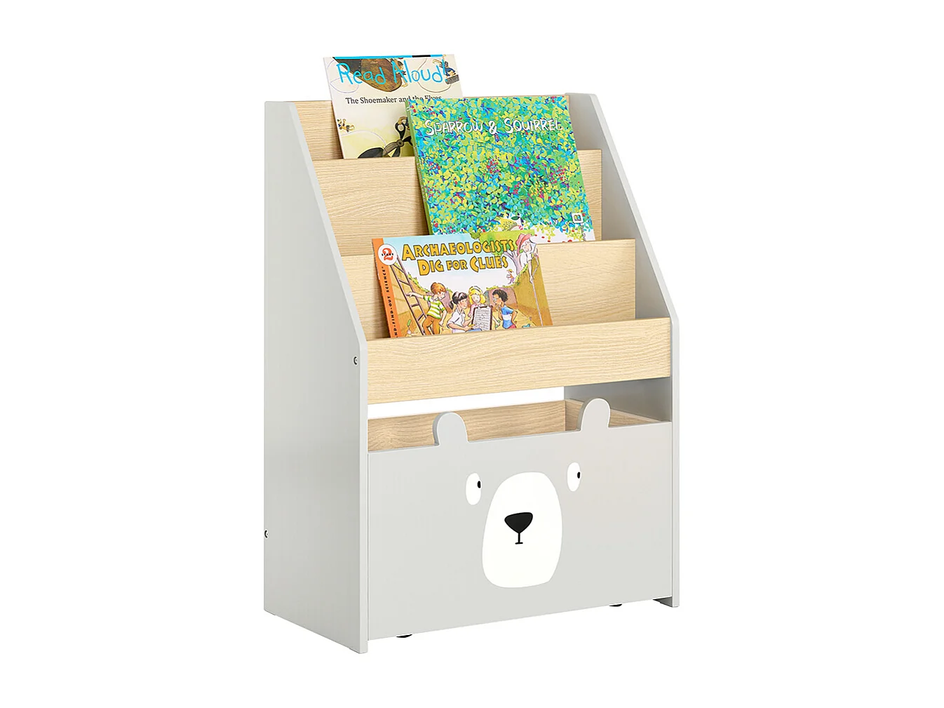 SoBuy KMB104-HG Bibliothèque Enfant, Étagère de Rangement Jouets pour Enfants, Porte-revues avec Boître Roulante et 3 Étagères