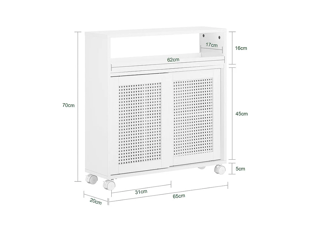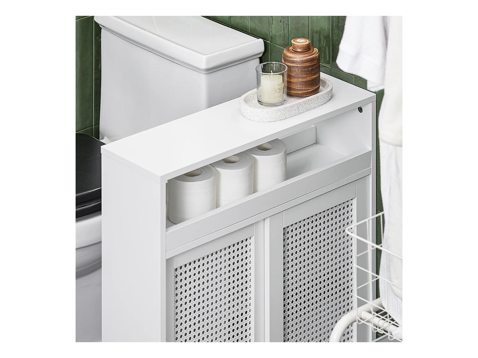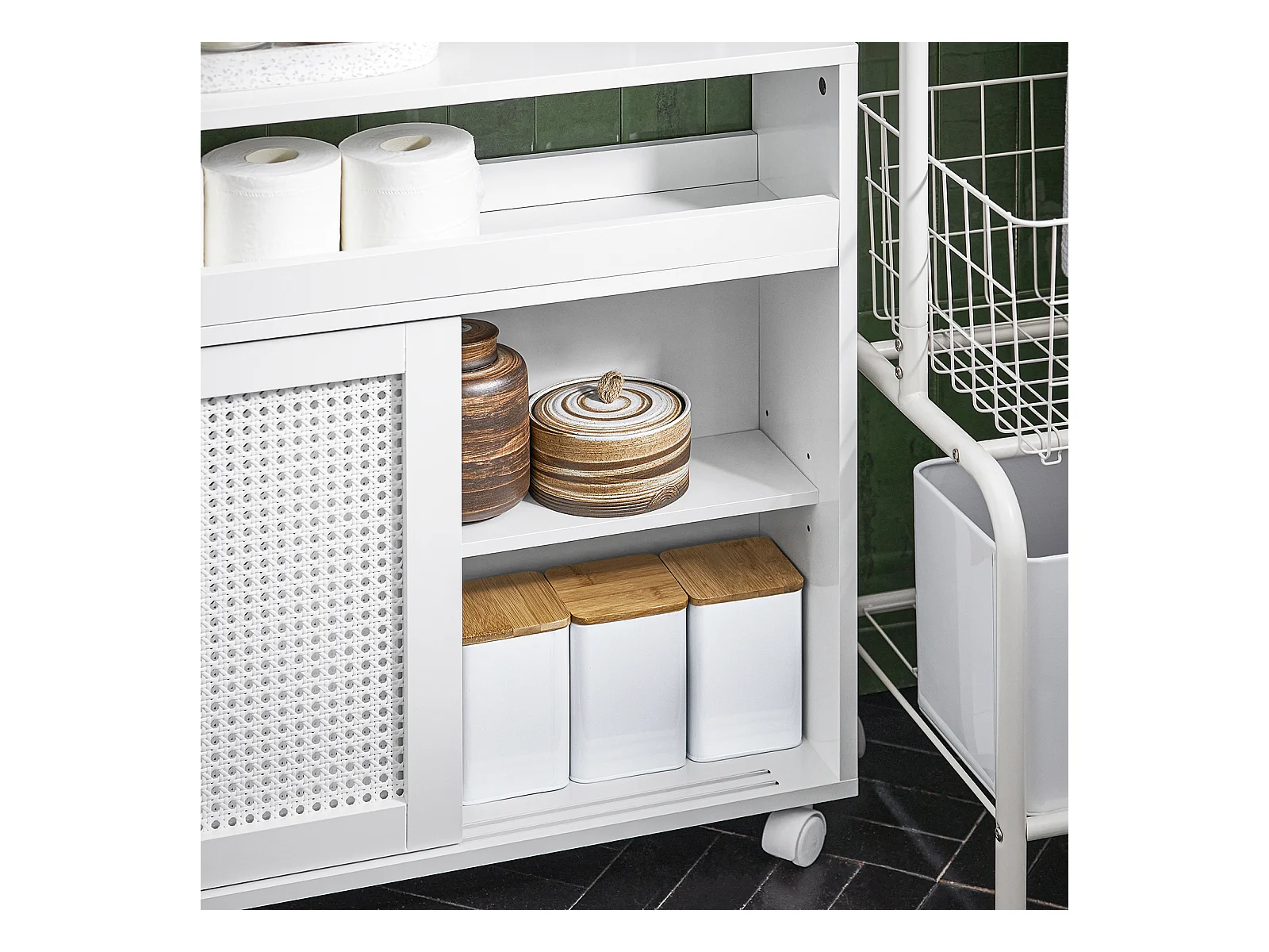 SoBuy BZR119-W Armoire WC Toilettes Compact Roulante sur Roulettes, Support Papier Toilette avec 2 Portes Coulissantes en Ploy Rotin