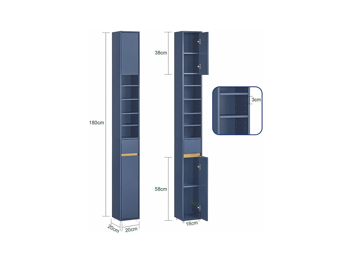 Armoire de Salle de Bain SoBuy en MDF Bleu, 20x20x180 cm