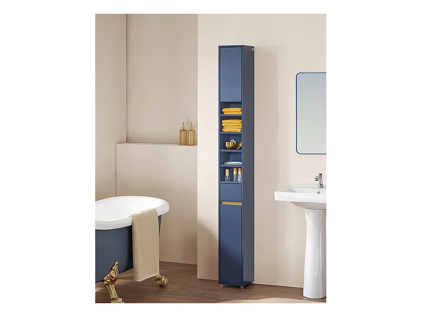 SoBuy Meuble Colonne Salle de Bain, Armoire Étroite 1 Tiroir, 2 Portes, 5 Compartiments, Étagères Réglables, Bleu BZR34-B