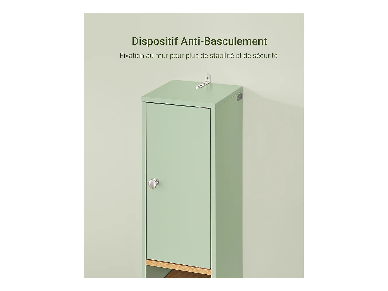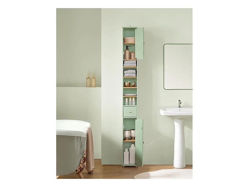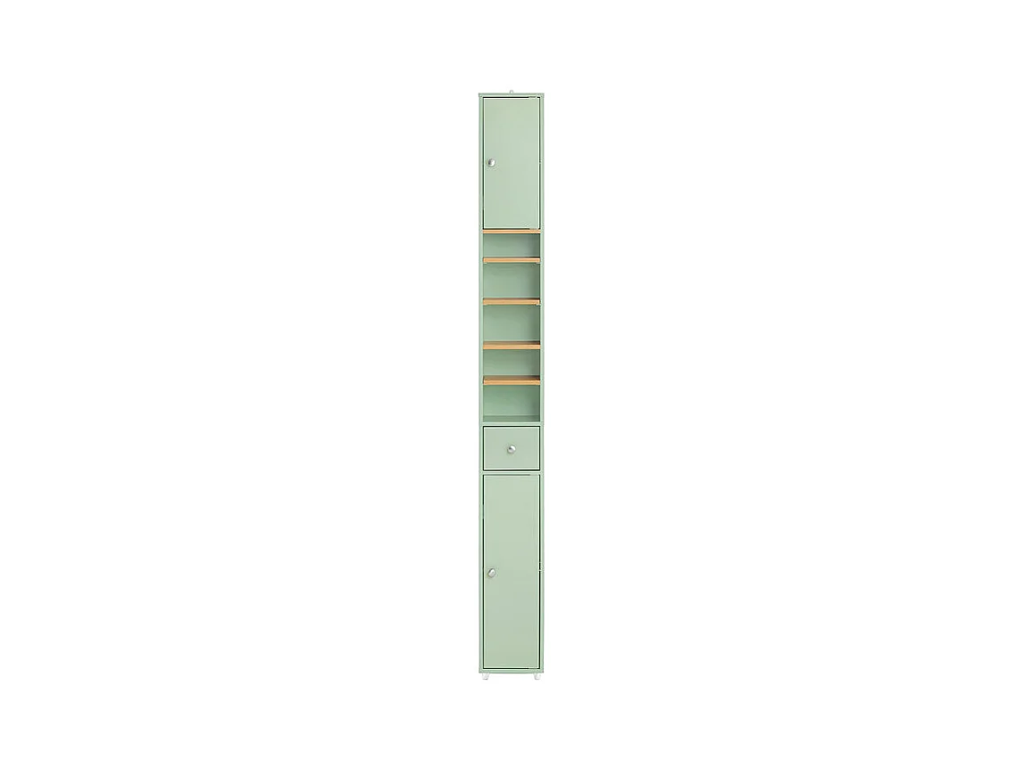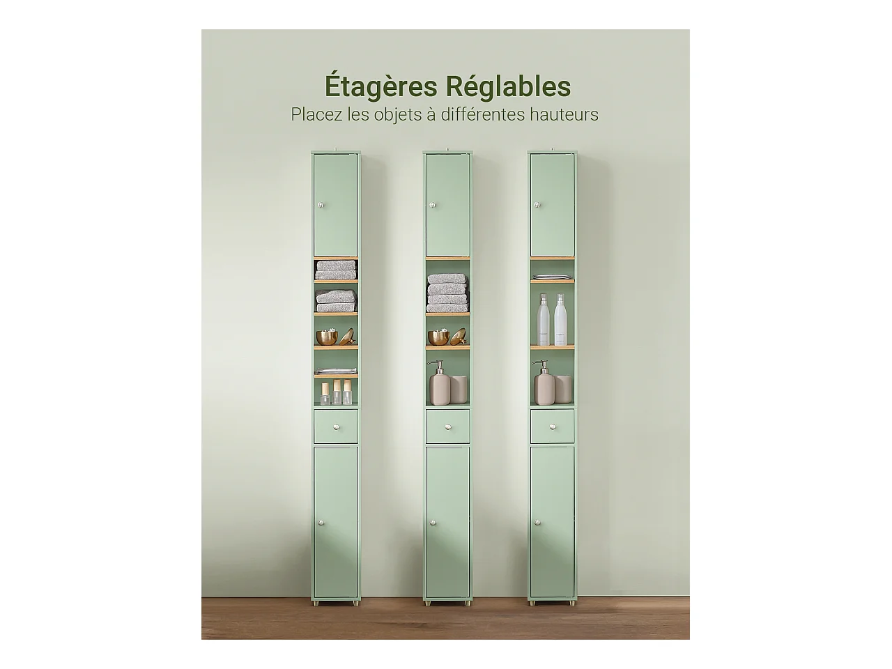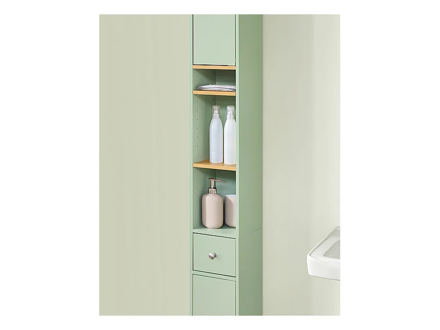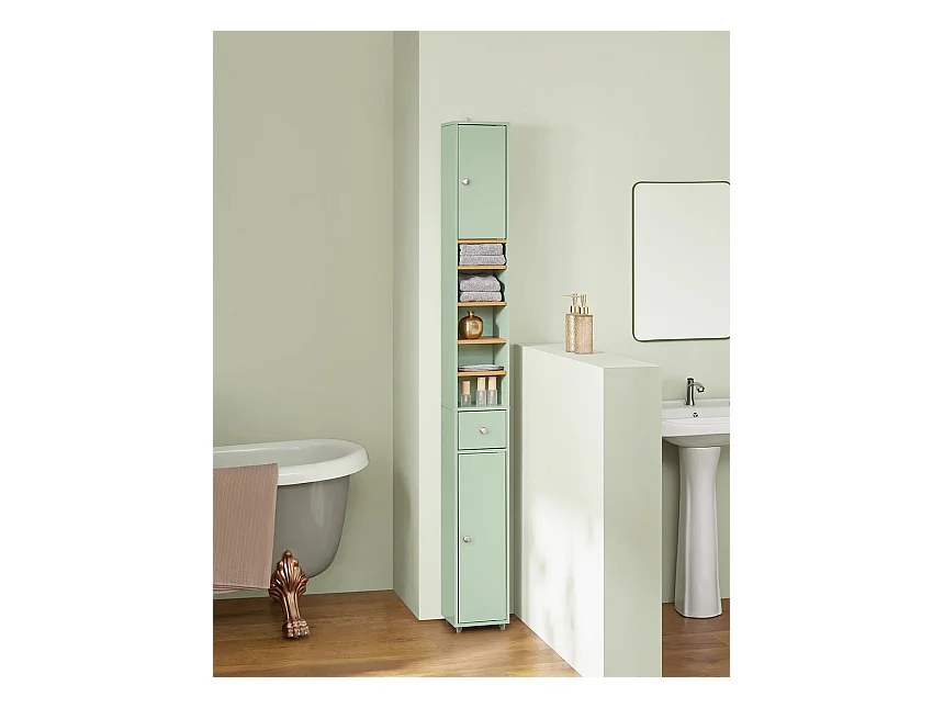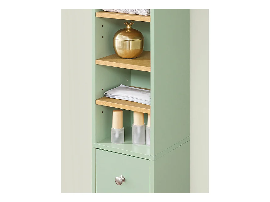 SoBuy Meuble Colonne Salle de Bain, Armoire Étroite 1 Tiroir, 2 Portes, 5 Compartiments, Étagères Réglables, Vert - BZR34-GR