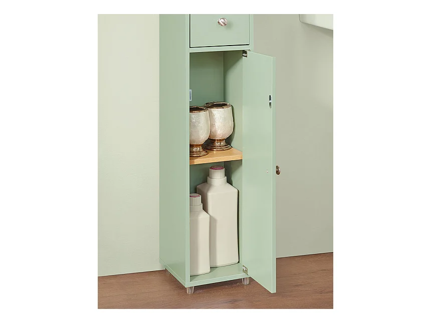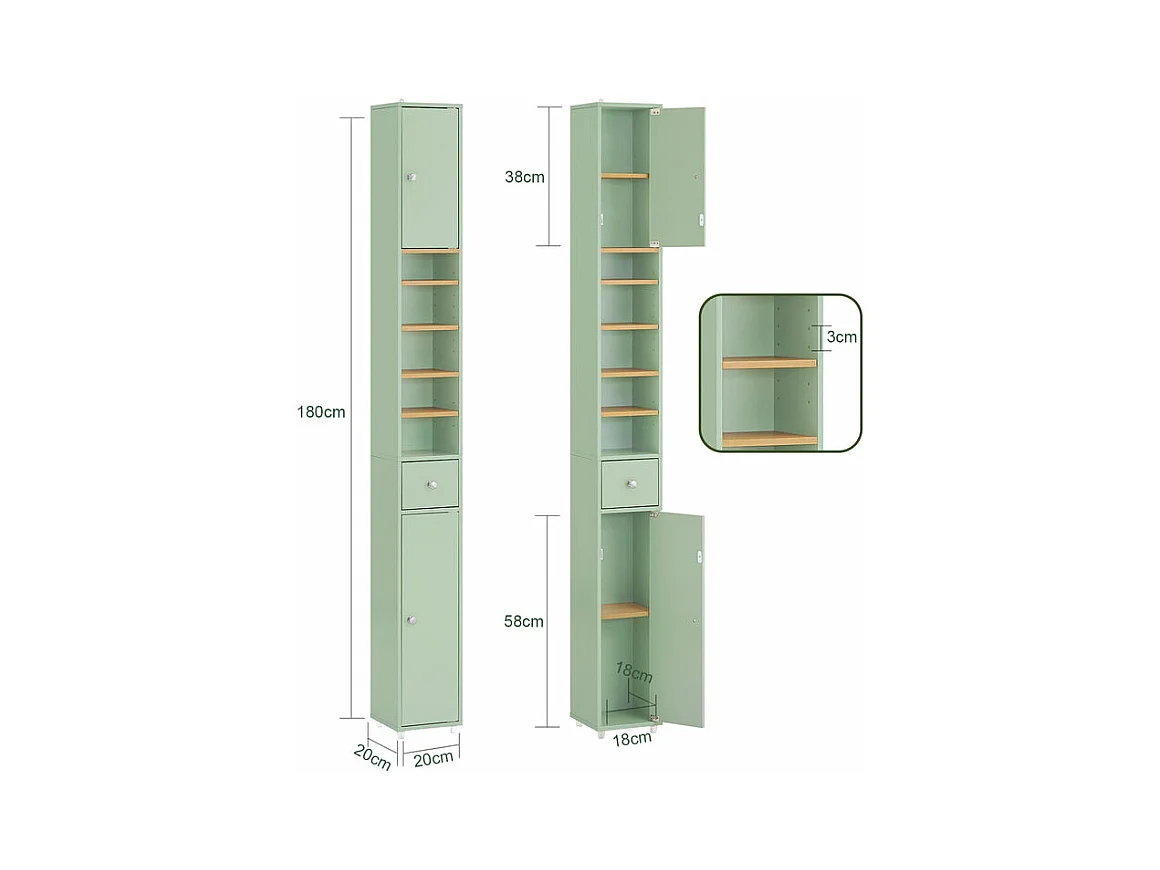 Armoire Étroite pour Salle de Bain avec Tiroir, Vert, 20x20x180 cm, BZR34-II-GR