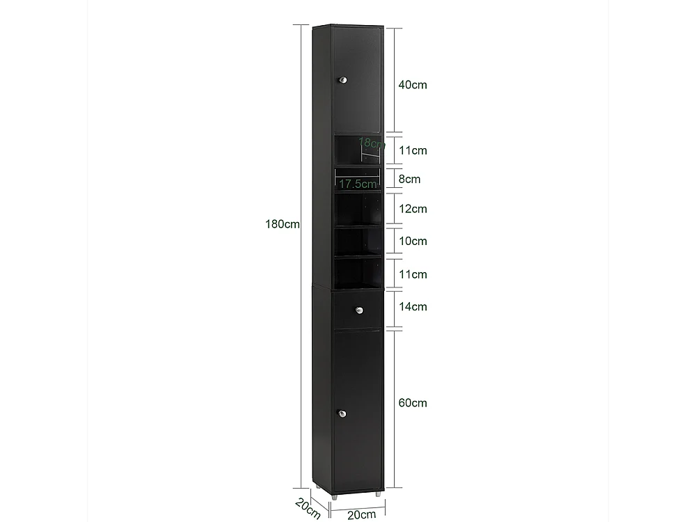 SoBuy BZR34-SCH Meuble de Rangement Salle d Bain Meuble Colonne Armoire de Toilette Meuble WC L20xP20xH180cm – Noir