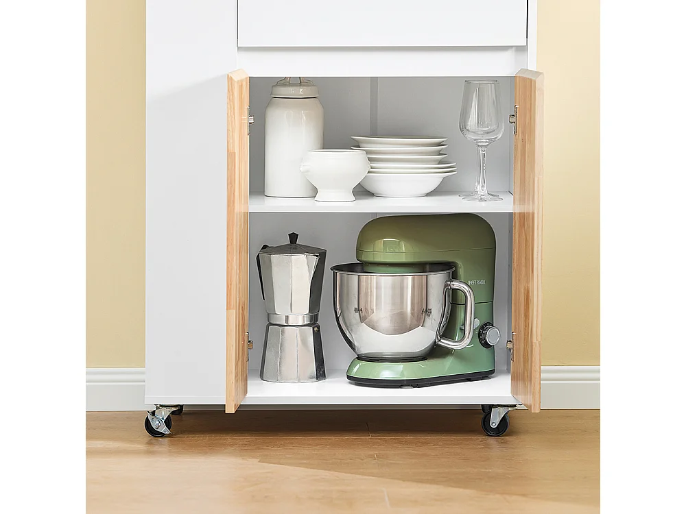 SoBuy Chariot de cuisine îlot avec plan de travail en hévéa, tiroirs, blanc
