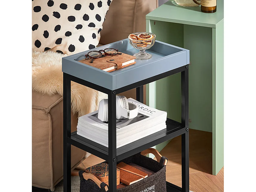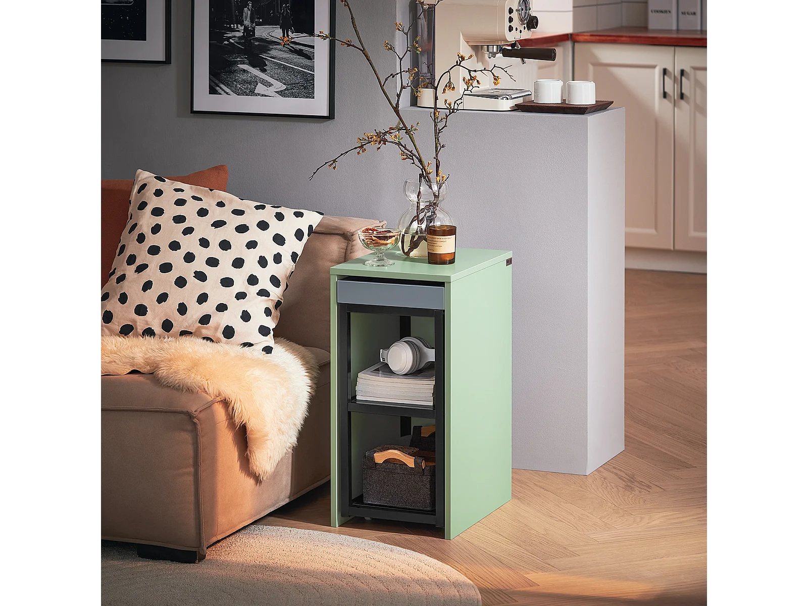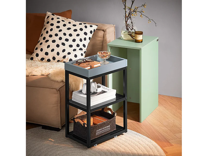 SoBuy FBT145-GR Bout de Canapé sur Roulettes Table Gigogne Table de Chevet Étroite Table de Nuit 1 Plateau et 2 Étagères
