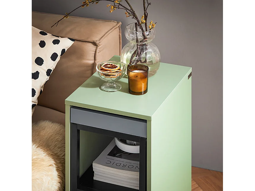 Bradford | Table d'appoint avec 1 porte en métal vert olive