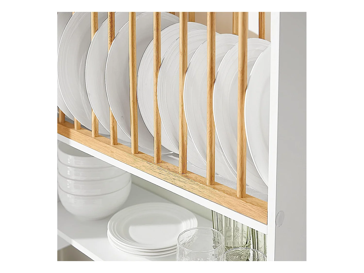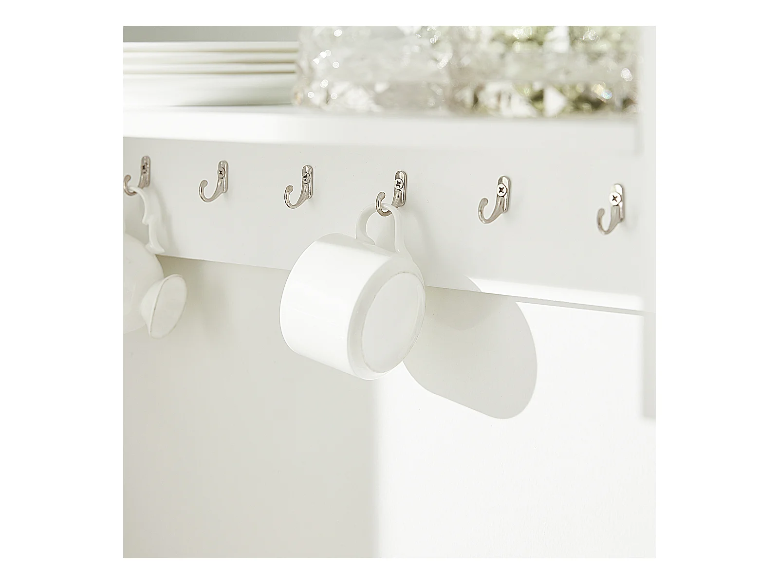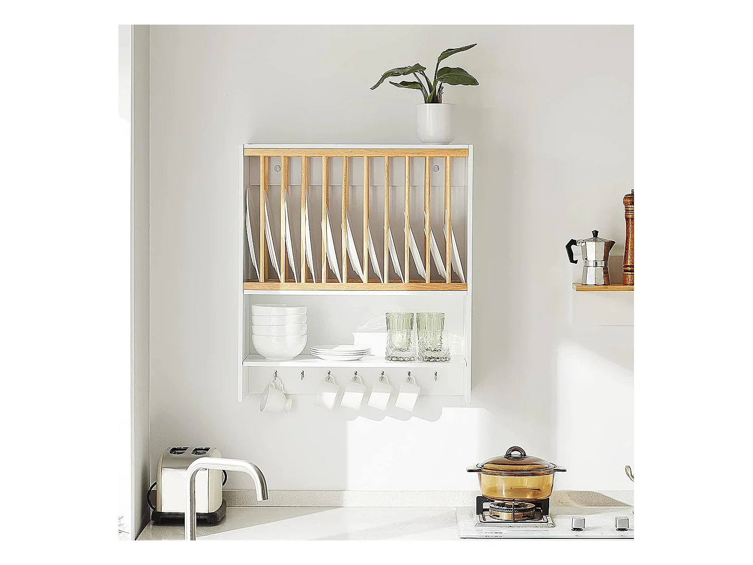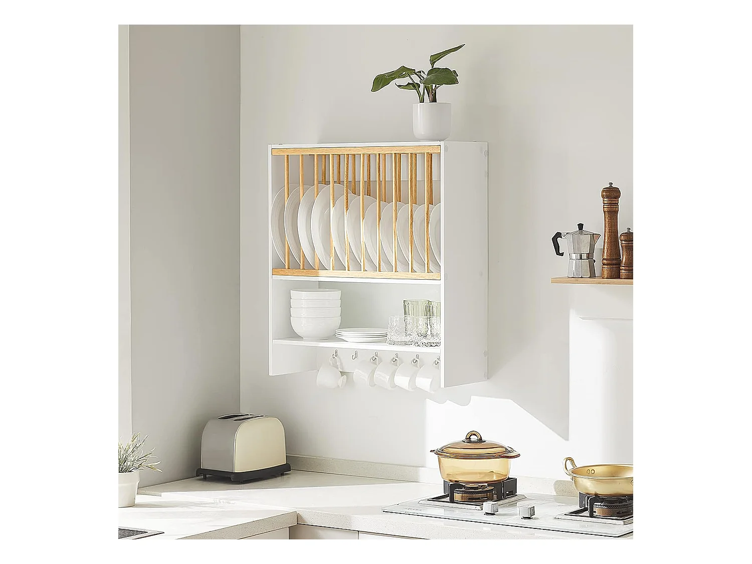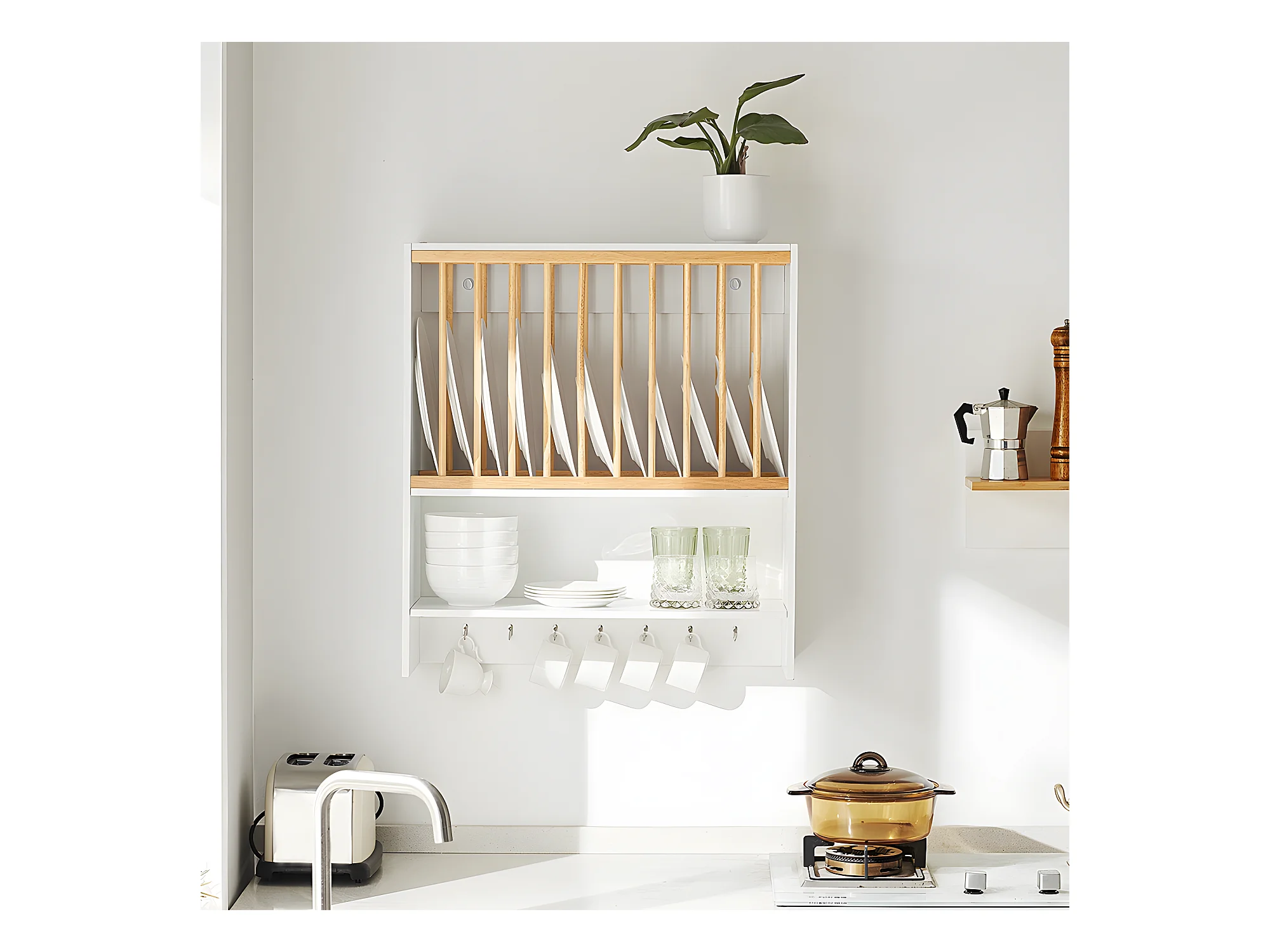 SoBuy KCR09-W Porte-Assiettes Murale Meuble de Rangement d'Assiettes Mural Etagère à Epices Etagere - avec 1 étagère supplémentaire et 7 Crochets