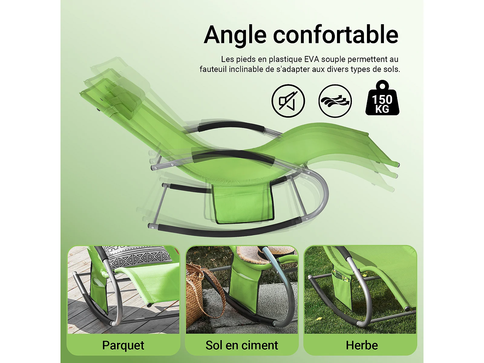SoBuy OGS28-GRx2 Lot de 2 Bain de Soleil Chaise Longue Fauteuil à Bascule avec Pochette