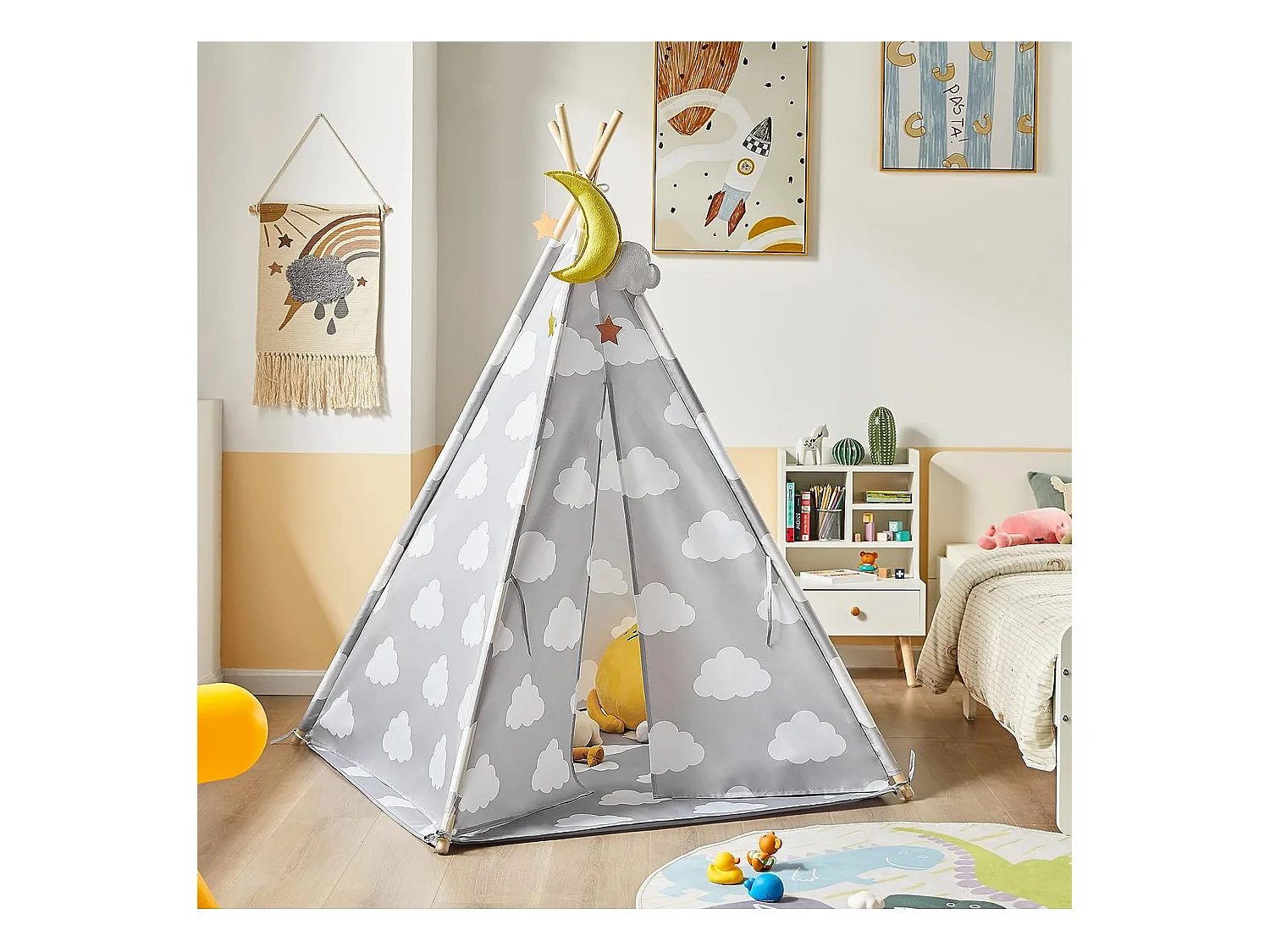 SoBuy OSS03-A01 Tipi Enfant Tente pour Enfant avec Tapis De Sol Indian Teepee Tente de Jeu pour Enfants avec Tapis