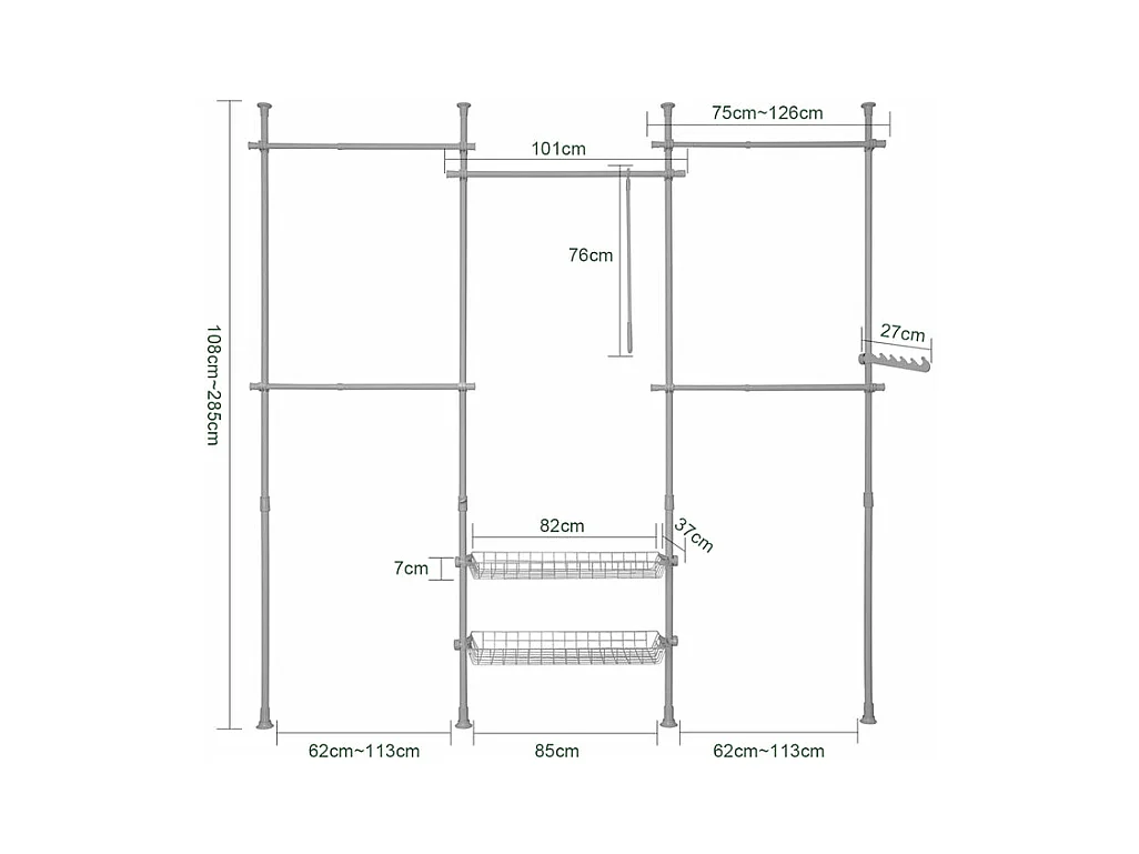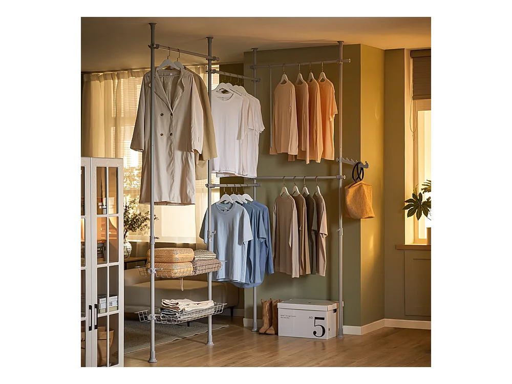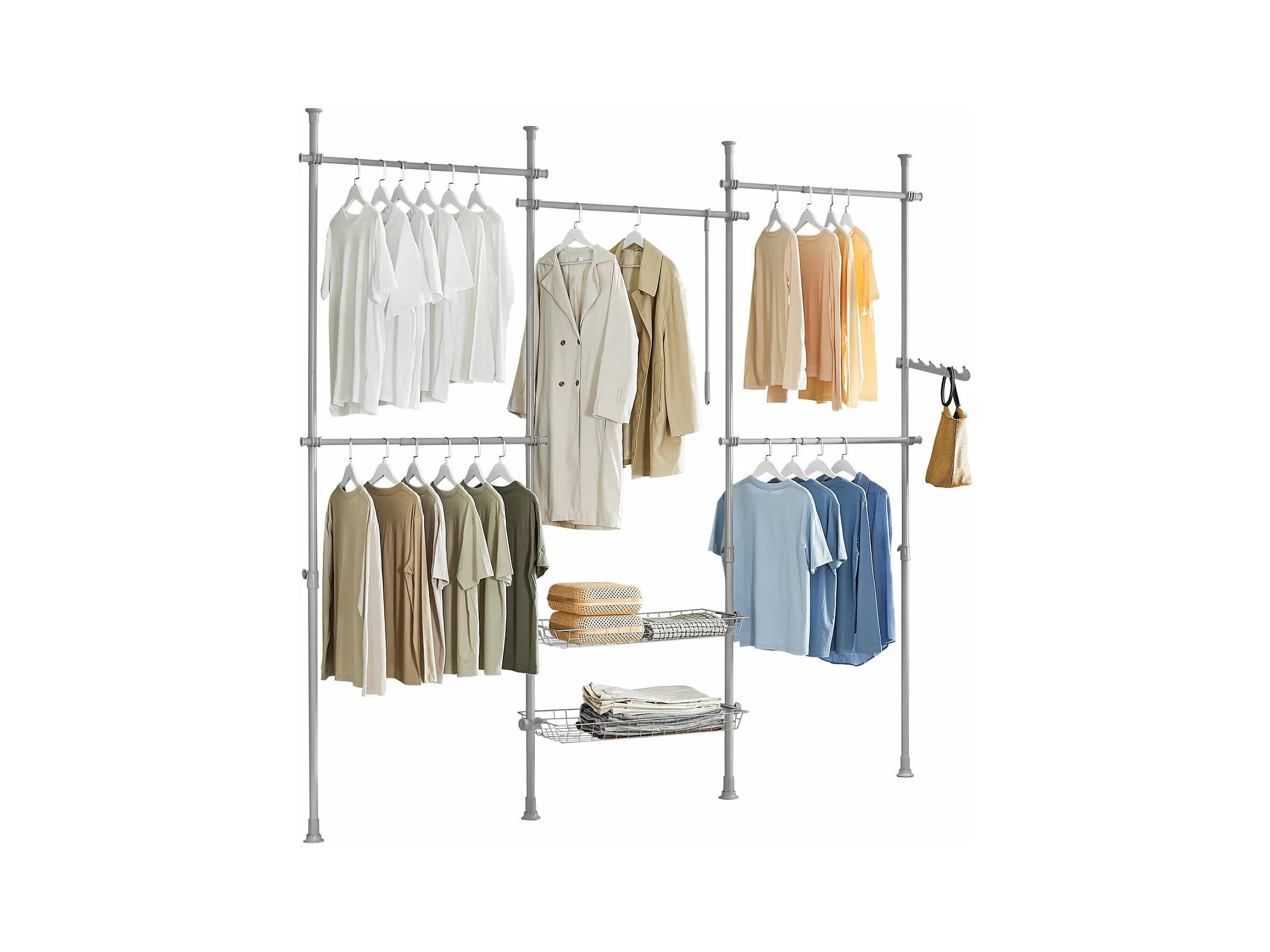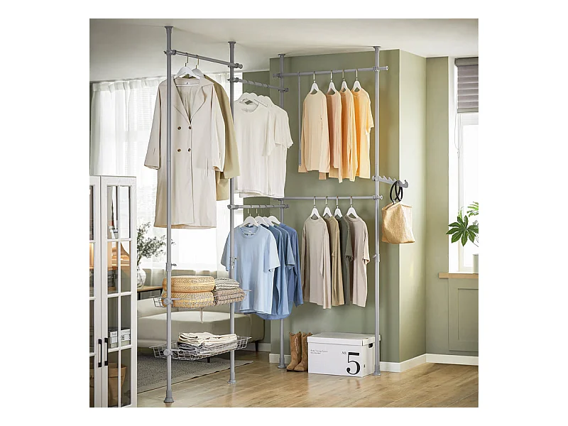SoBuy KLS04-HG Garde-Robe Système de Penderie Télescopique avec 5 Barres Portant de Vêtement