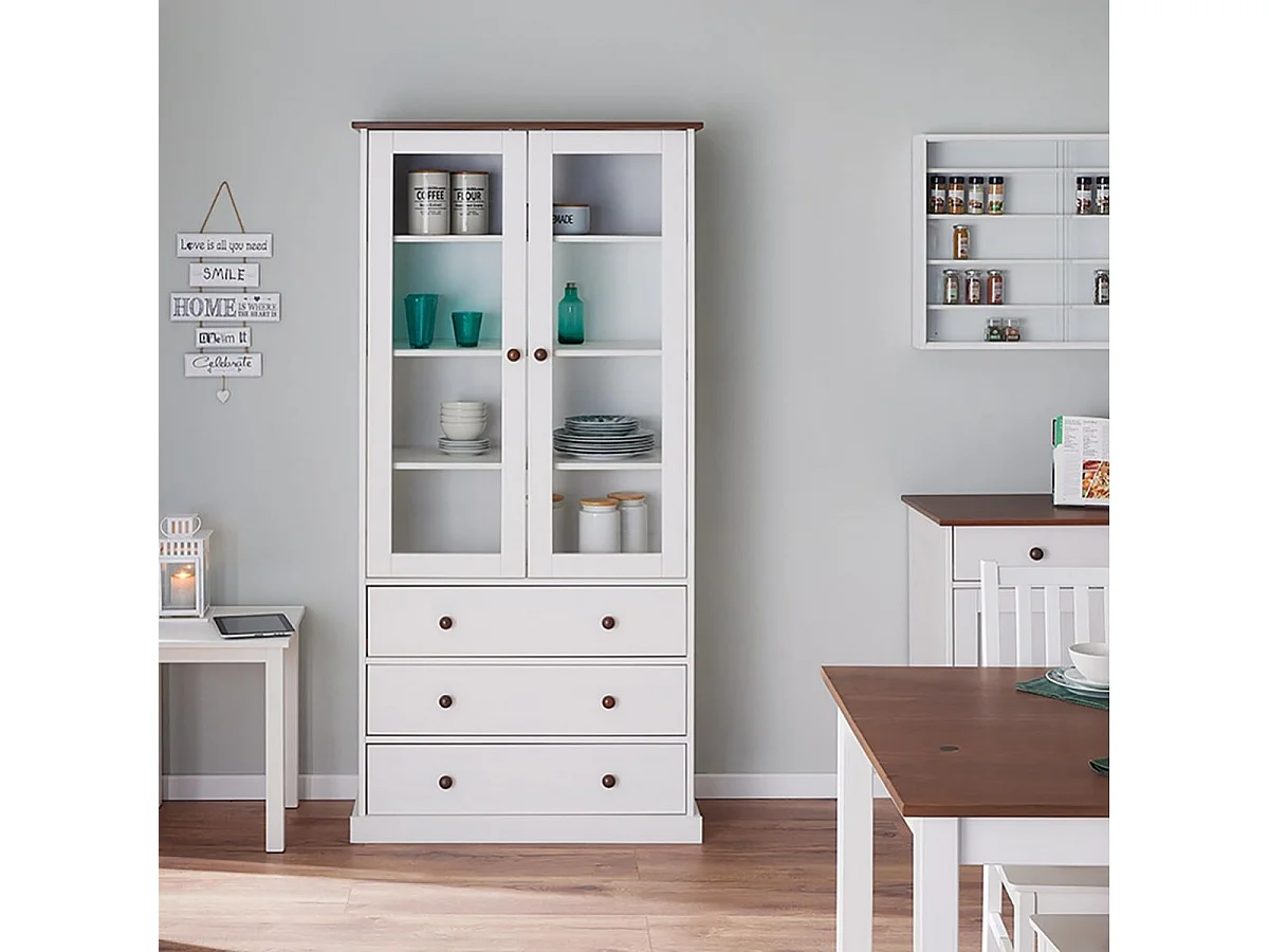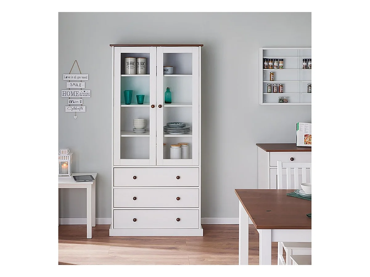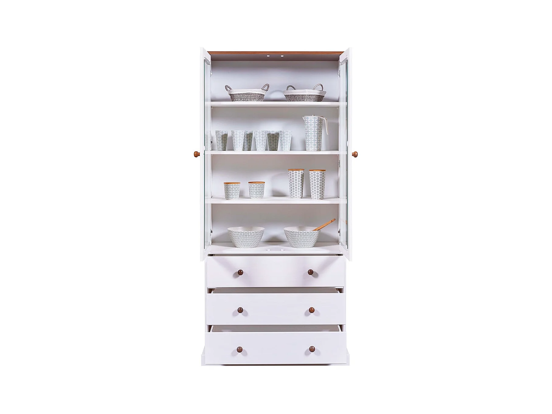 SOCOA - Vitrine 2 Portes 3 Tiroirs en MDF Laqué Blanc