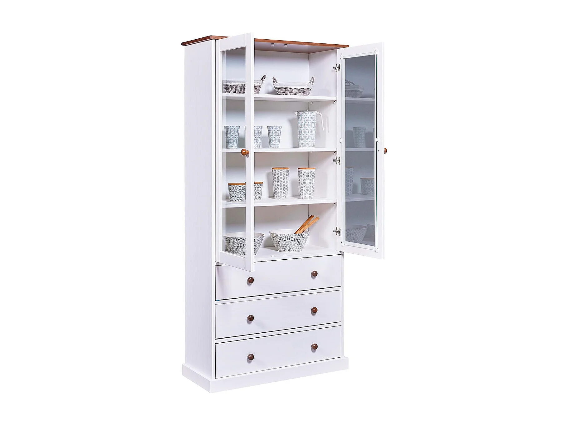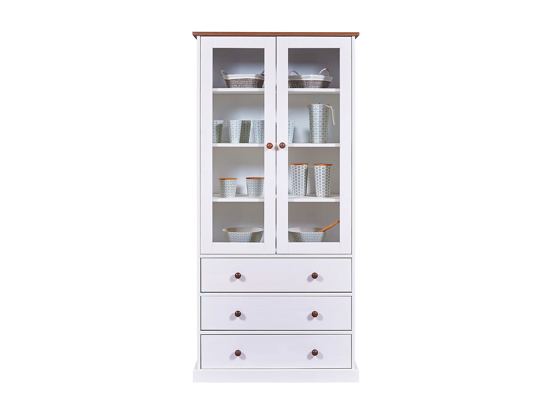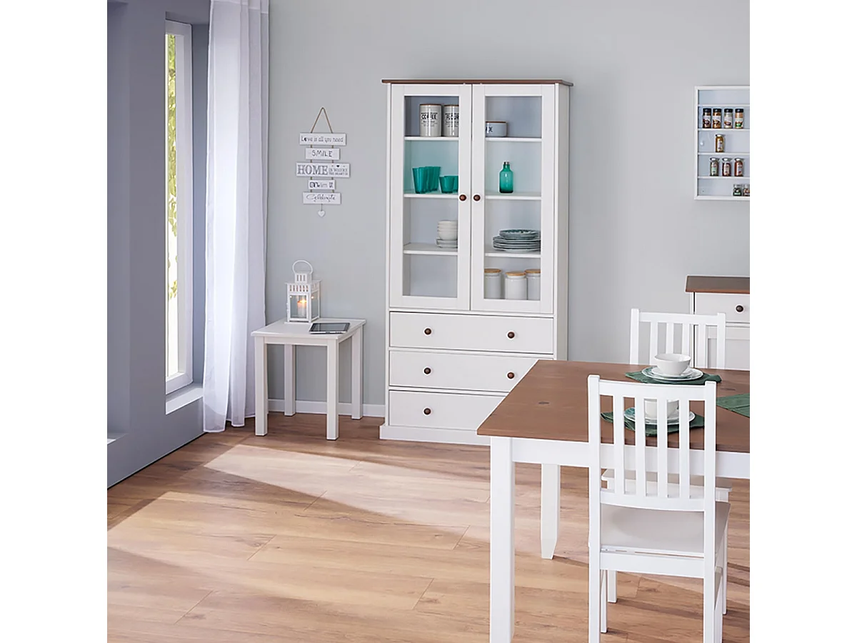 SOCOA - Vitrine 2 Portes 3 Tiroirs en MDF Laqué Blanc