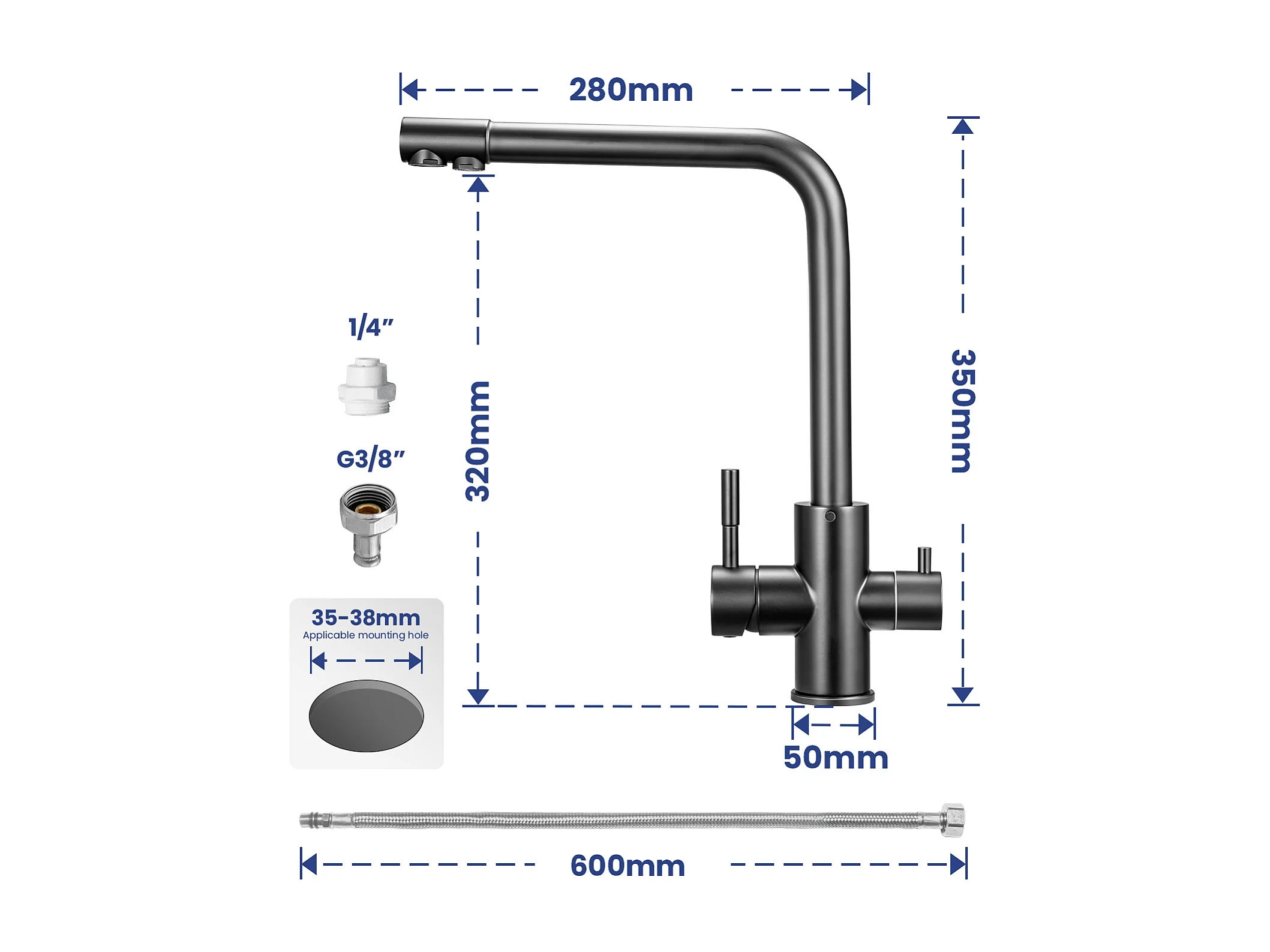 SOFETIY MAX Robinet de Cuisine 3 Voies, Mitigeur Cuisine 3 en 1, Mitigeur Cuisine Rotatif à 360, Robinet Eau Potable 2 Leviers, Noir