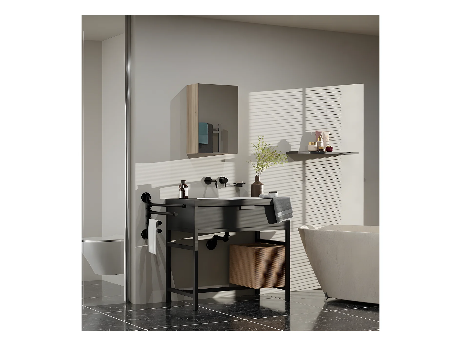 Ensemble lave-mains suspendu avec robinet noir et miroir ovale
