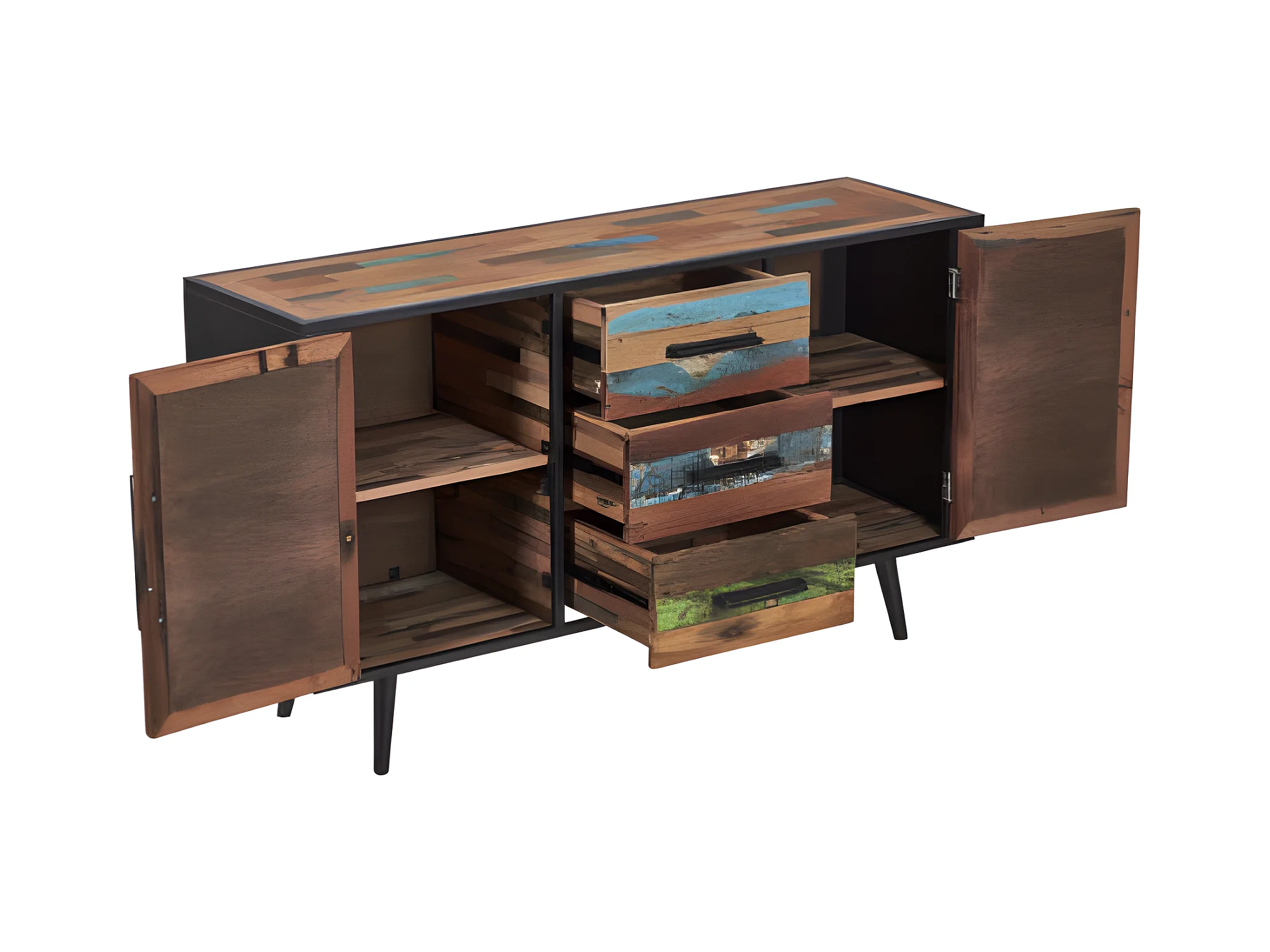 Soho buffet en bois de bateau recyclé - 2 portes - 3 tiroirs - Style Industriel - L160