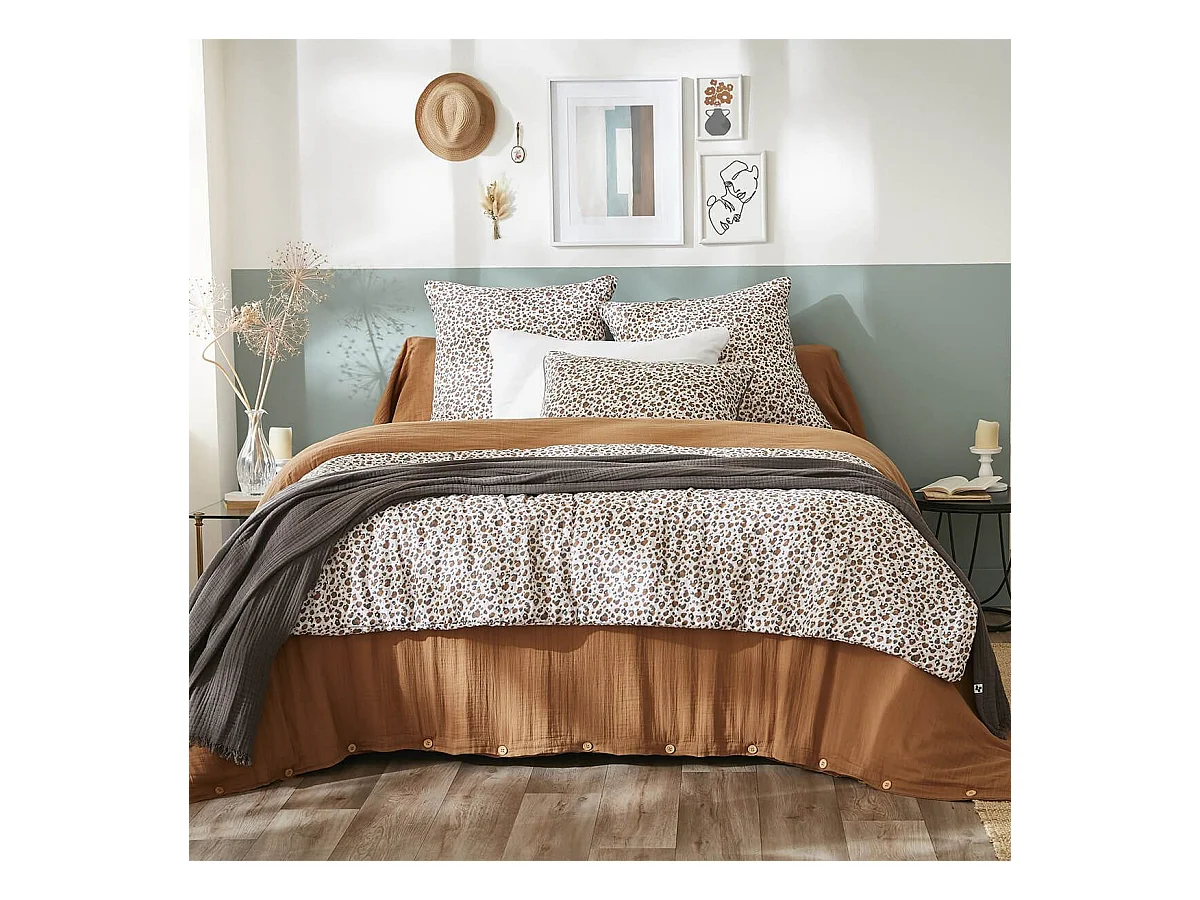 SOLENE - Taie d'Oreiller 50x70cm Gaze de Coton Imprimé Tâcheté Beige