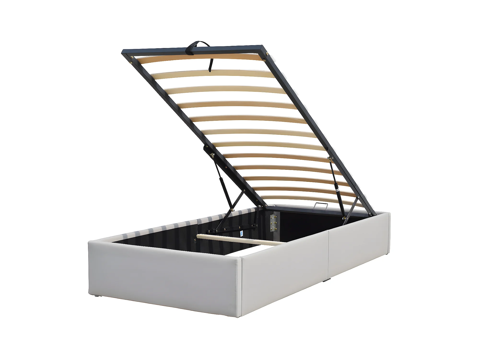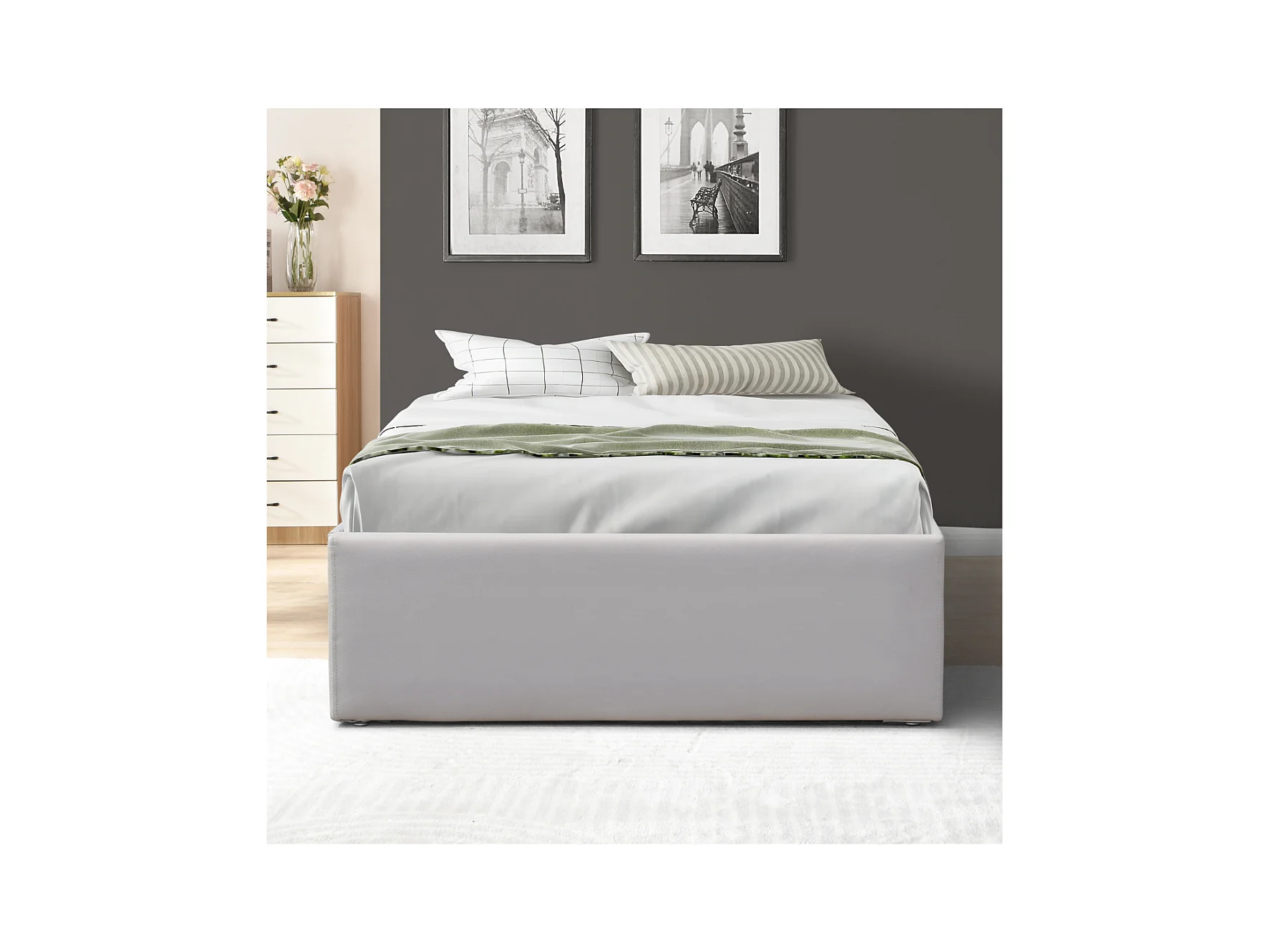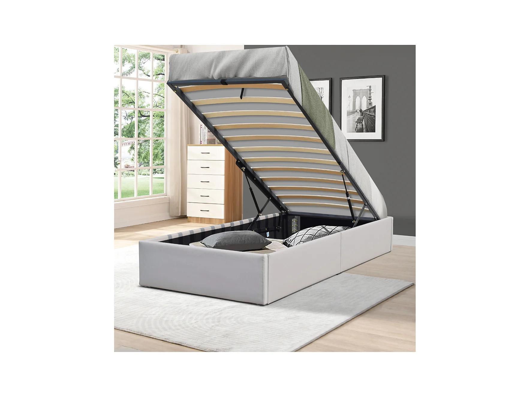 Lit Coffre Gris Loris 90x190 aux Pieds - Montage Facile et Entretien Simple Simili PVC