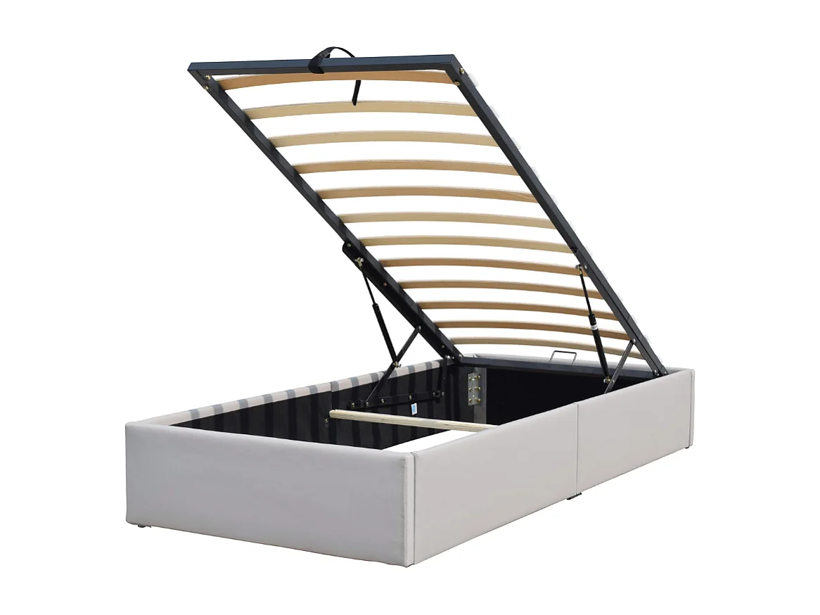 Lit Coffre Gris Loris avec Pieds pour Matelas 90x200cm Monté Rapidement Revêtement PVC