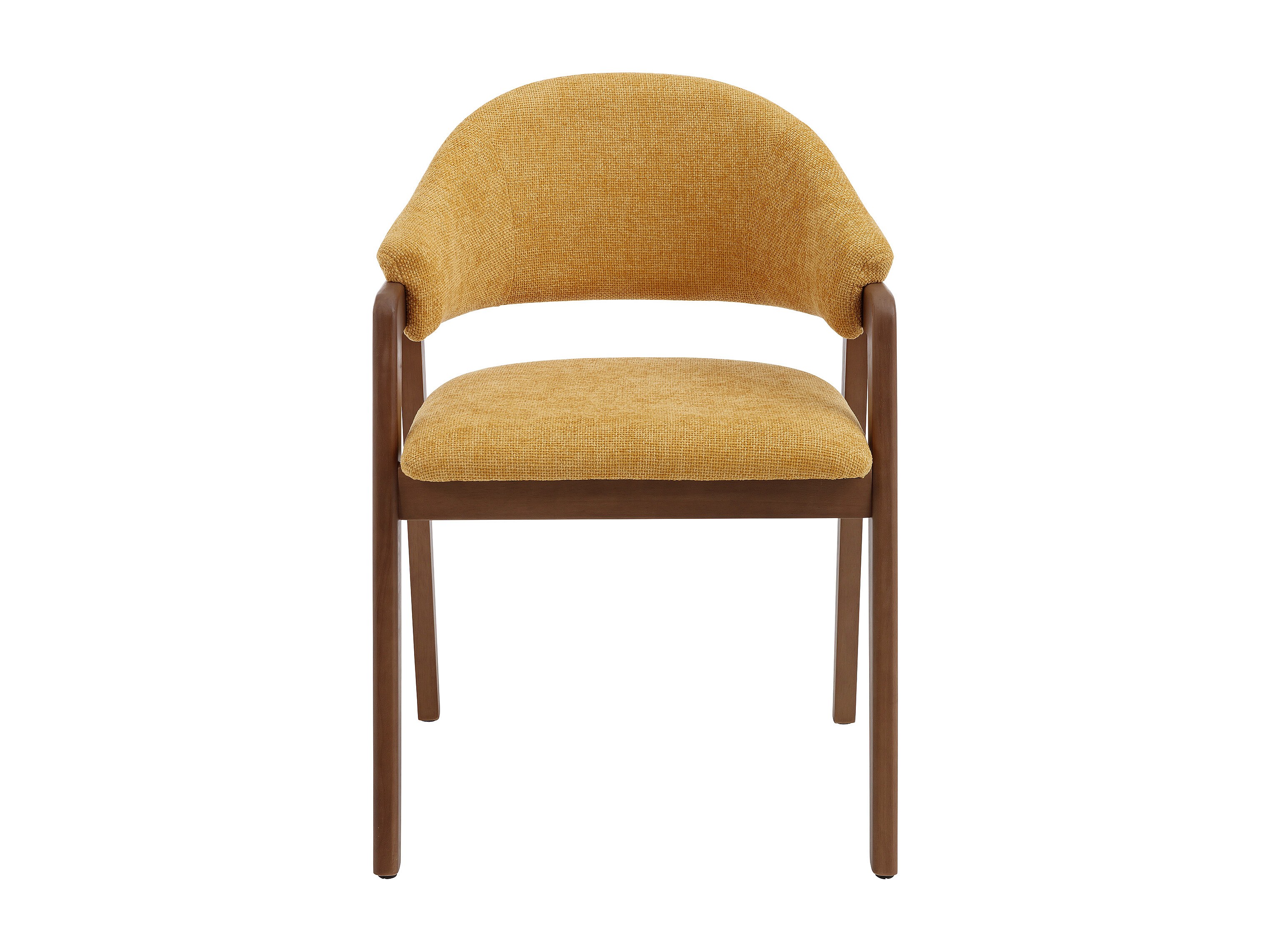 Lot de 6 chaises avec accoudoirs en tissu texturé et bois d'hévéa - Jaune et naturel foncé - SOLUNA