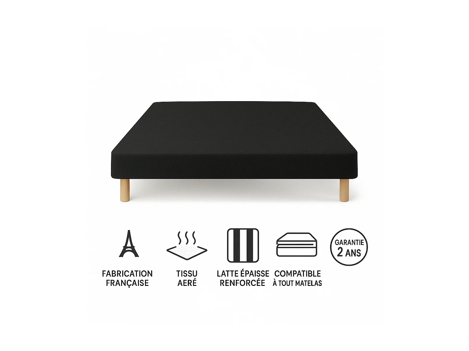 Sommier Tapissier Noir 120x190 Fabrication Française Artisanale