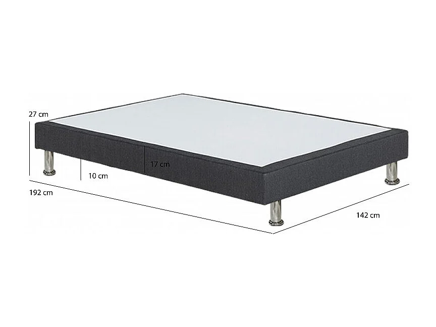 Sommier tapissier 140x190 cm en tissu gris foncé pieds métal - REMIMOS