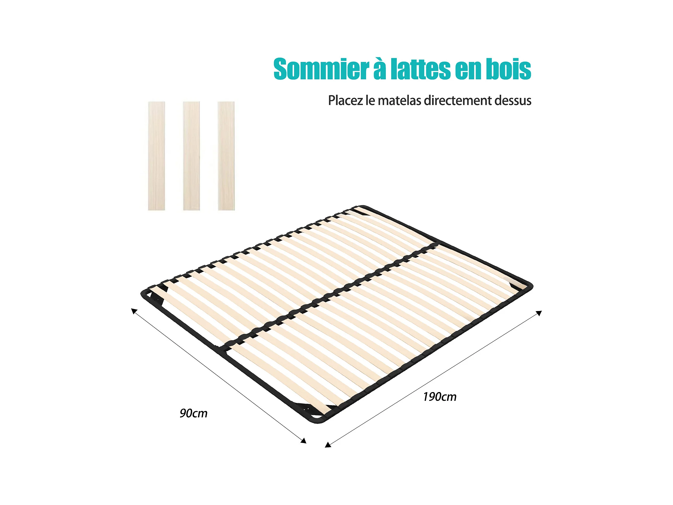 Sommier 140x190cm sans Pied - Sommiers à Lattes en Bois - 2x20 Lattes