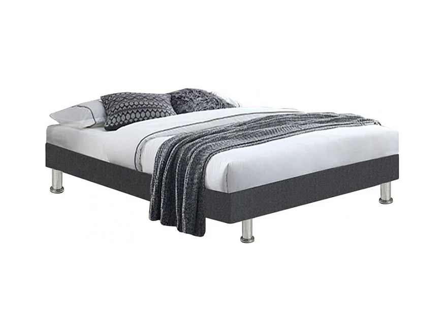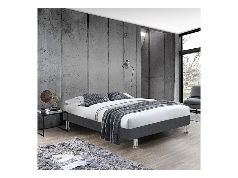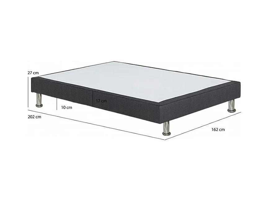 Sommier tapissier 160x200 cm en tissu gris foncé pieds métal - REMIMOS