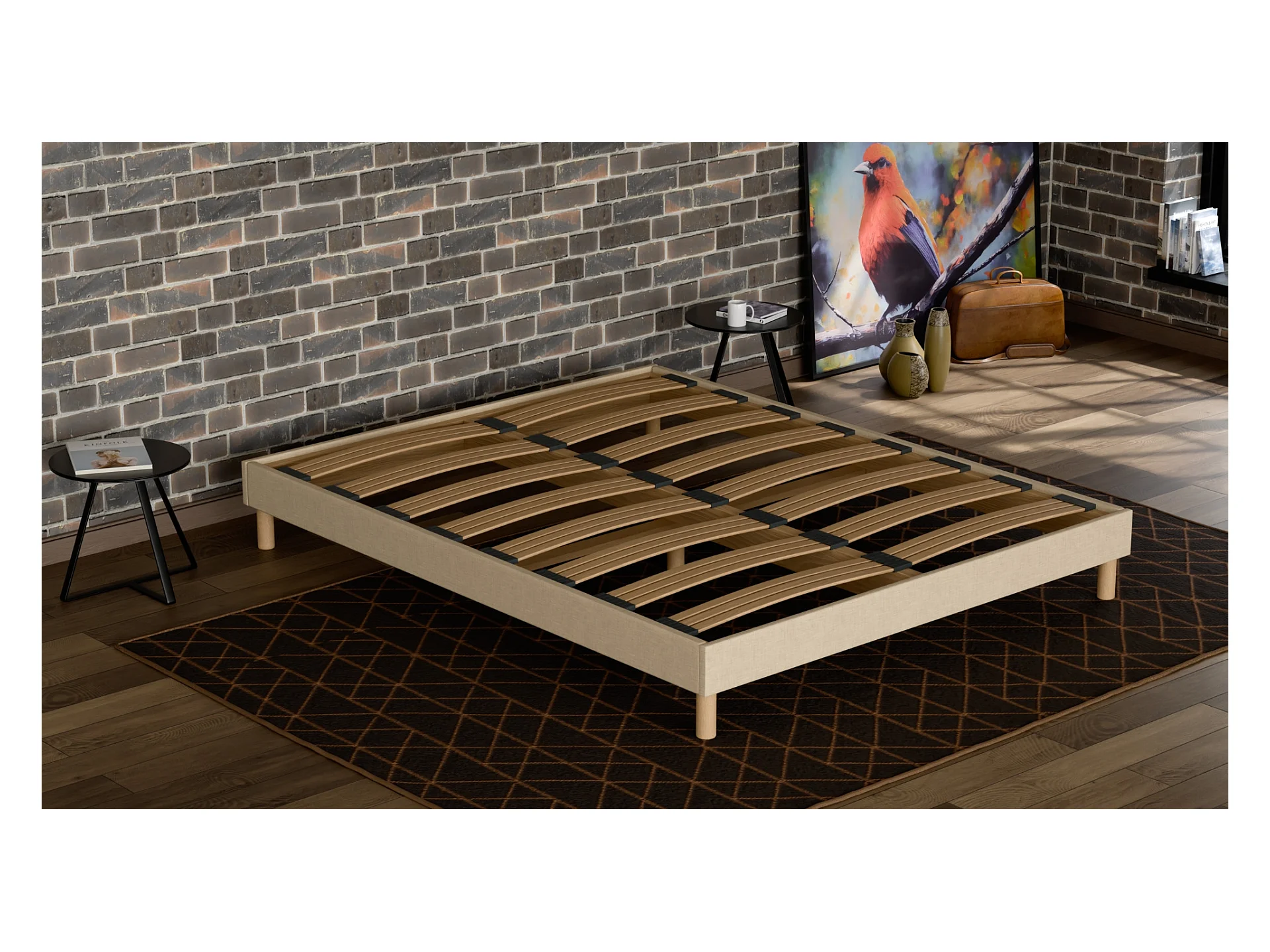 Sommier à Latte 140x200 cm - Bois Épicéa Structure Durable Haute Qualité - Beige - Silencieux, Confortable et Résistant - Douce Lune