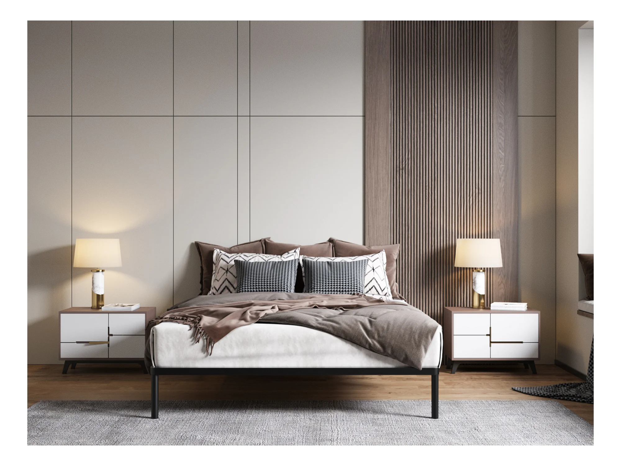 Cadre de lit 160 x 200 avec Base en métal, avec lumières LED et Prises Multiples (1 Prise AC, 2 Ports USB), lit Double en métal avec casiers, Moderne, Beige