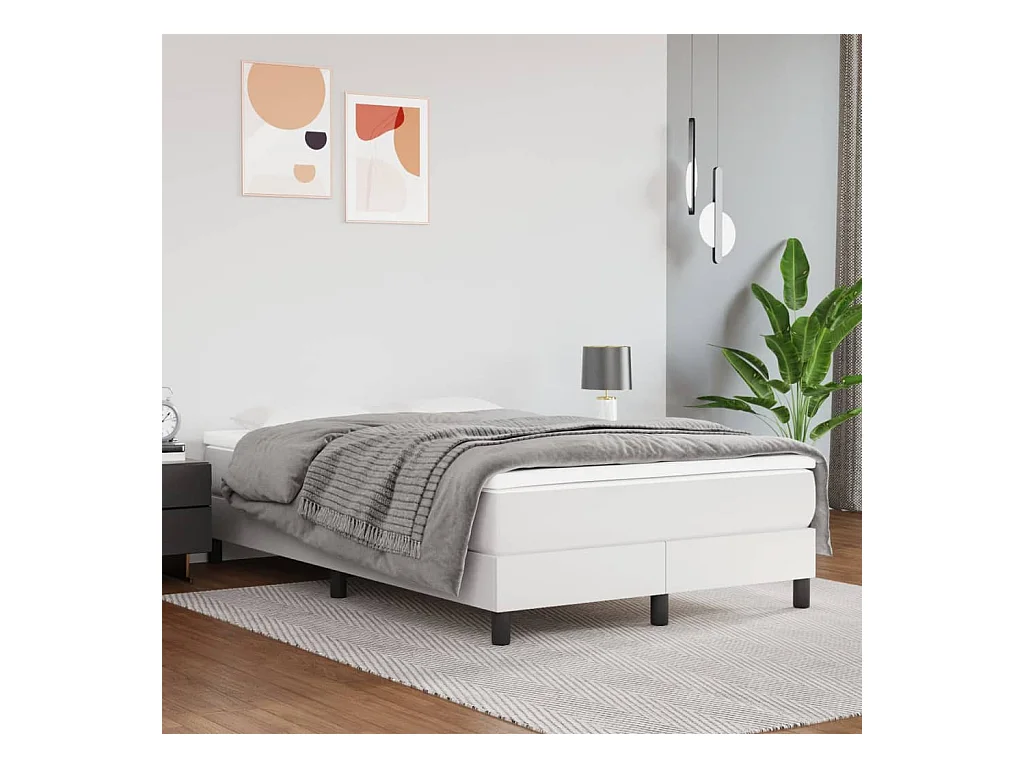 Sommier à lattes de lit avec matelas blanc 120x190 similicuir