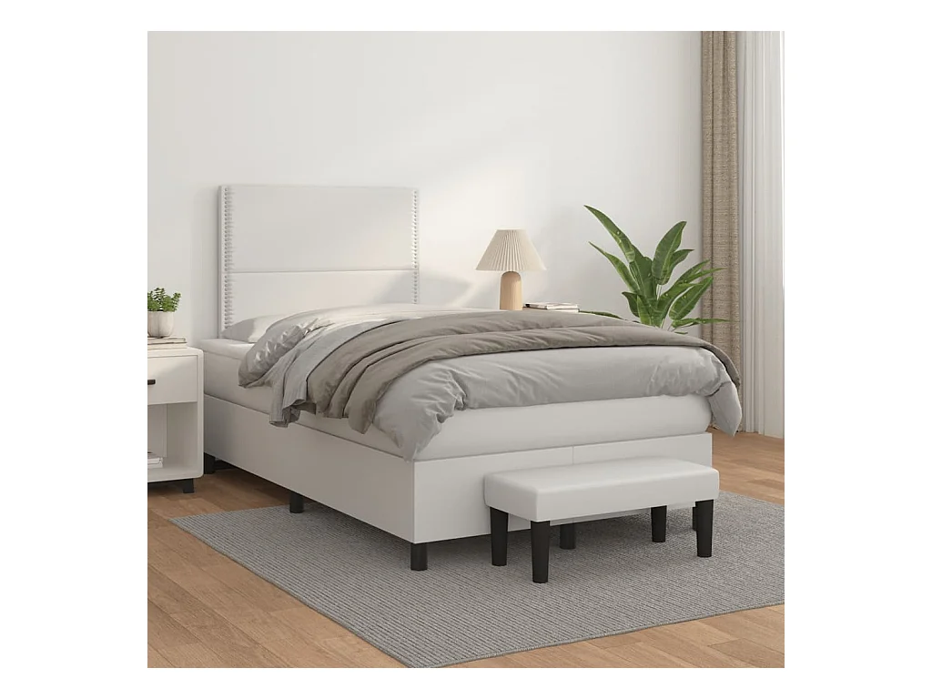 Sommier à lattes de lit avec matelas blanc 120x190 similicuir